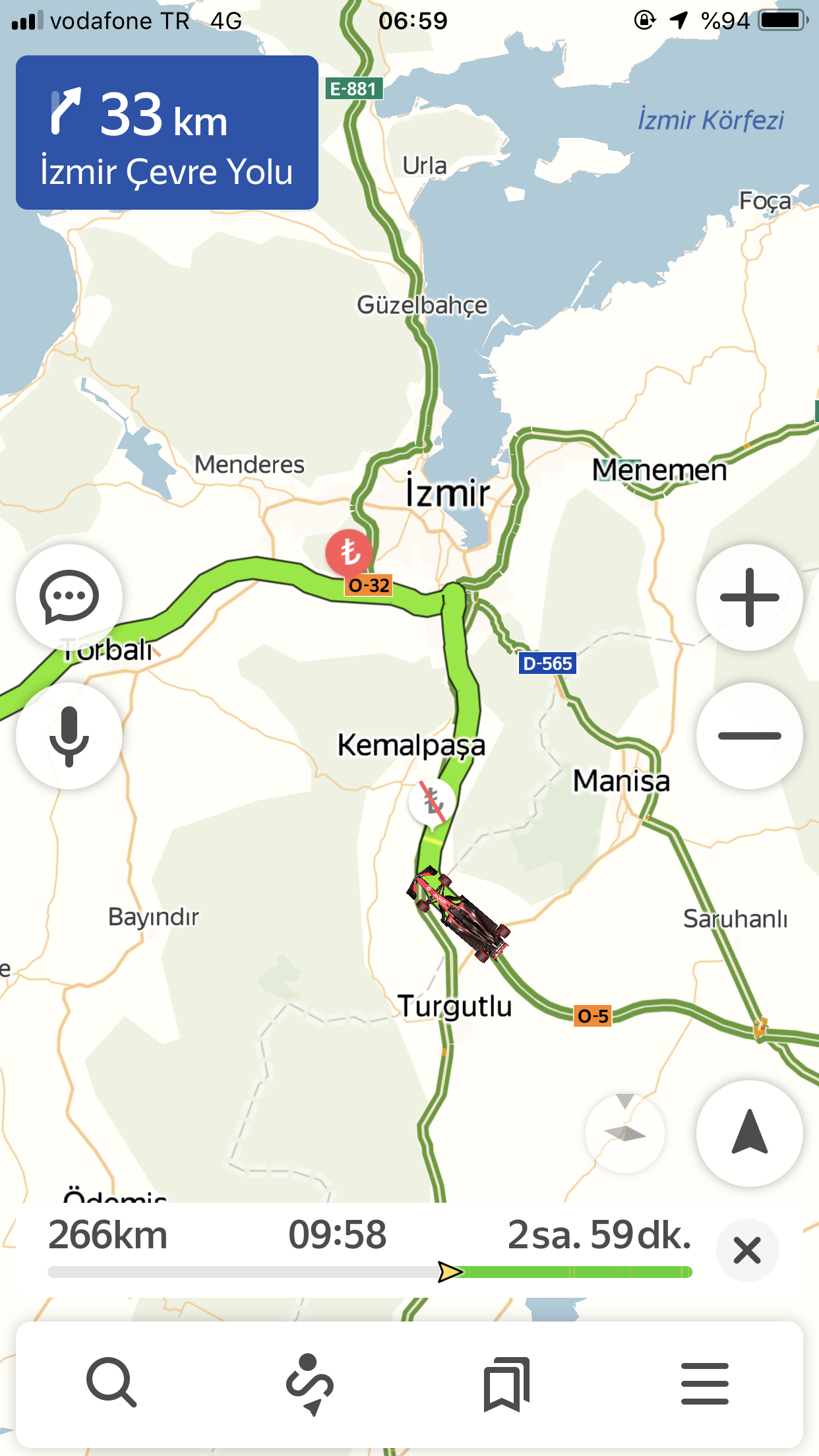 Şu an aynı otoyolun Manisa-İzmir arasında bulunan son Opet Oksijen’inden yazıyorum bu mesajımı. Yol aşırı düz ve güzel fakaaat dinlenme tesisleri Karacabey’i geçtikten sonra sadece Akhisar’da Shell var ve turizm firmalarının durağı olmuş durumda. Tuvalet için 20dk bekliyor erkekler kadın kısmını Allah kurtarsın. Orada beklemek istemeyen ben gibi insanlar atıyor kendini yola 200-220 basarak bu Opet’e geliyor. Bu tesis de bitmemiş aslında da olsun diye açmışlar sadece. Yol öyle bir düzenlenmiş ki bu eski Susurluk şehir içinden geçme sapağına dönmeniz neredeyse imkansız. Tek şerit dönüyor koskoca yol. Kısaltma durumuna gelirse bastığınız için kısalıyor başka bir esprisi yok. < Resime gitmek için tıklayın > < Resime gitmek için tıklayın > |