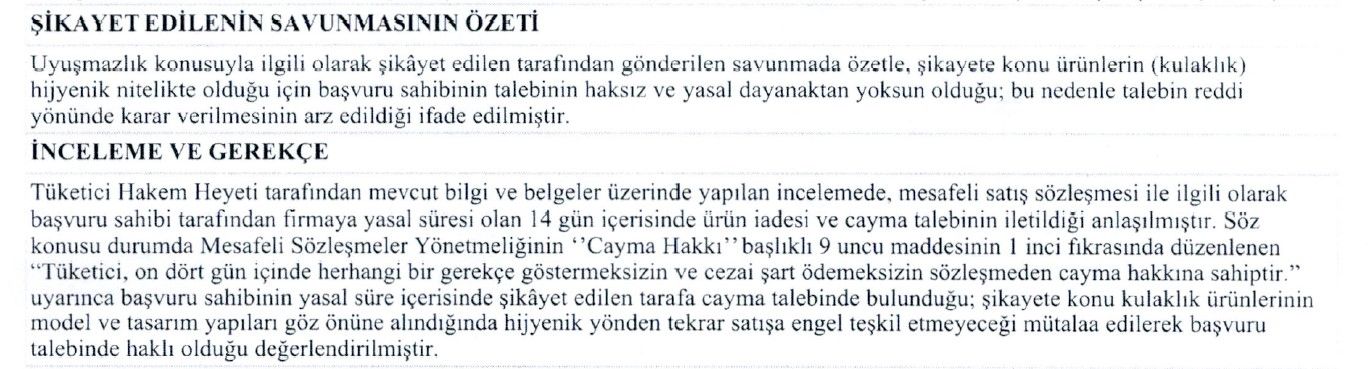 | Keyfi iade durumu yok ve kulaklık kullanılmadı. Fikrim değişti iade edip başka kulaklık alacaktım. Madem bu yasadan şikayetçisin sen kullanmazsın hakkını olur biter. |