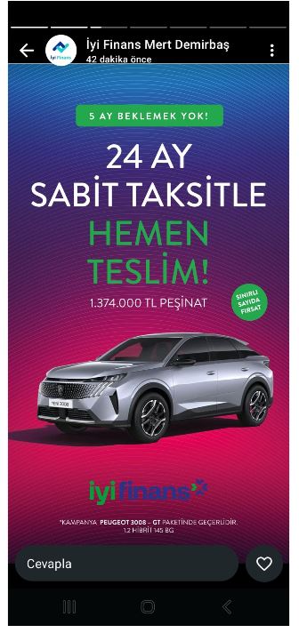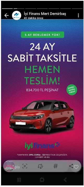| Valla hocam sana göre dolandırıcılık olabilir ama işin içinde BDDK var ve aracımı alan bir kişi olarak söylüyorum dediğin ile alakası yok. Dolandırıcılık olsa işin içinde aracı nasıl teslim etsin size. Diğer firmalar 5 ay bekletiyor İyi Finans ise kendisine ait araç kiralama filosu var Online Filo diye geçiyor oradan kiralık araç sonrasında mutabakat ile birlikte araç teslimi yapılıyor. Ne olursa olsun araç teslim edilecek deniyor. BDDK boş bir kurum değil onaysız bir şey yapılamaz |