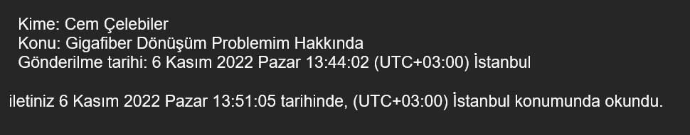 Direkt genel müdür Cem Çelebiler'e mail attım. Okundu bilgisi geldi. Gelişmelere göre size de bilgi vereceğim. < Resime gitmek için tıklayın > |