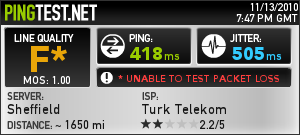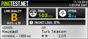 test yapmamıza gerek yok siriusb dostum, ping'ler gayet leş :D WoW'da mesela, 4k ping alıyorum :D