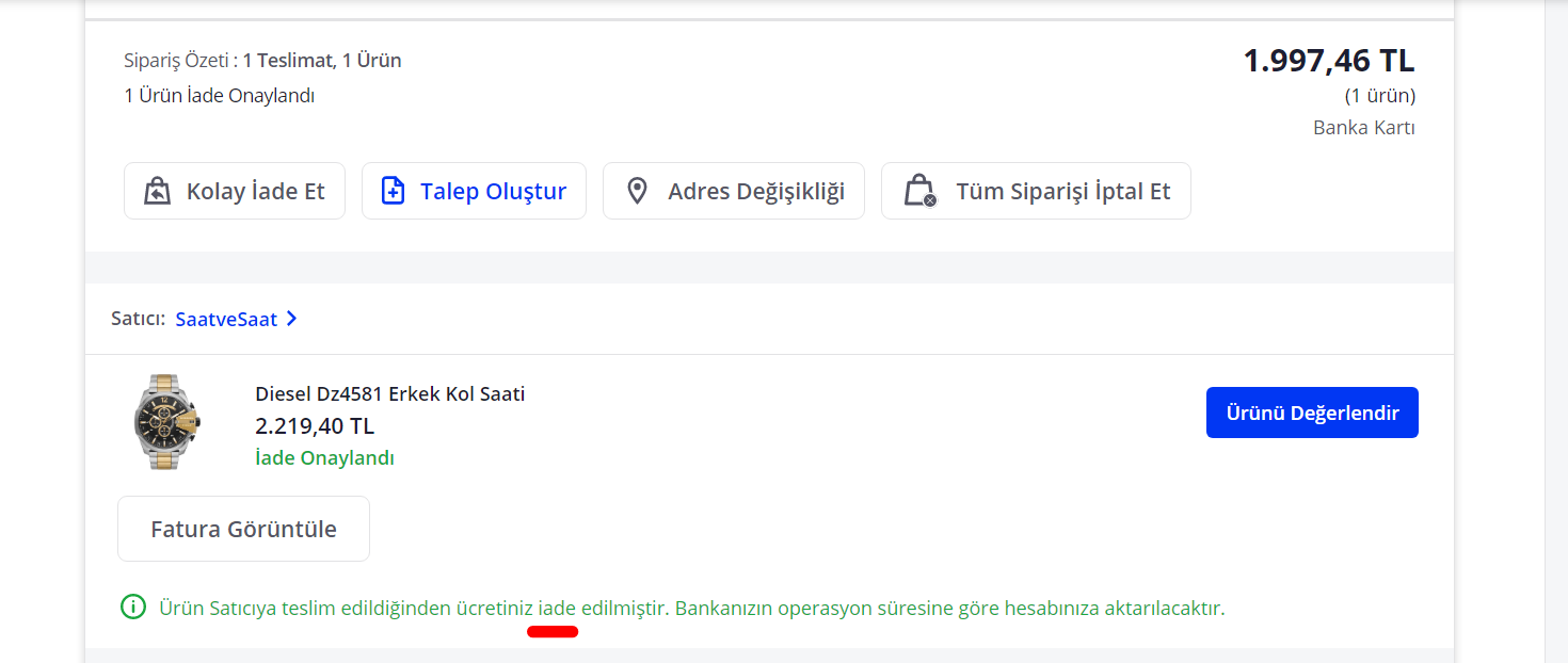 Pazarama aracılığıyla Saat & Saat firmasından bir saat sipariş geçtim. Gelen ürün, satışı yapılan ürün değil, farklı ve tamamen dijital olan bir modeldi. Bu hatayı aradan geçen bu kadar zamana rağmen yetkililer fark etmedi ve bana zaman kaybettirdiler. Saat & Saat müşteri hizmetlerine ulaşmaya çalıştım ama bu mümkün değil çünkü telefona bir makine bağlamışlar, muhatap olacağınız bir insan evladı yok orada. Müşterileriyle direkt birebir sıcak bağlantıya geçmek yerine, sorununuzu bize mesaj olarak yazın diye o konuşan makine aracılığıyla öneride bulunuyorlar. Oh ne güzel, hiçkimseyle muhatap olmak yok, sorunu ivedilikle aktarıp aksiyon almak yok, kafaları rahat... Saat & Saat gibi ünlü ve kurumsal bir kimliğe sahip bir firmanın bu kadar basit bir kolaycılığa kaçması bir yana, yaptığı büyük hatayı fark etmeyip müşterilerini mağdur etmesi bende çok büyük bir Hayal kırıklığına sebep oldu. İlk alışveriş ve kötü bir deneyim...