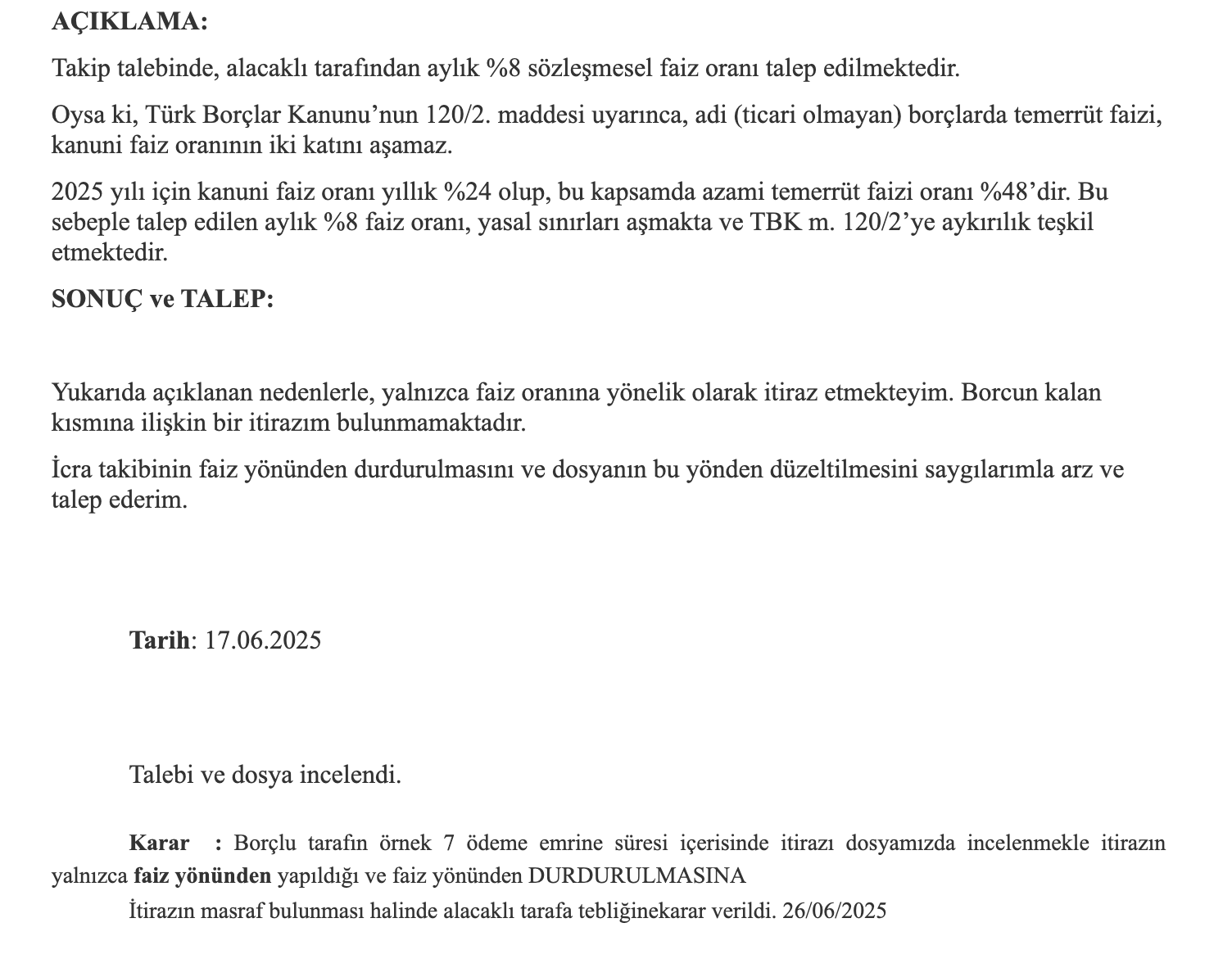| Hocam faize itiraz dilekçeniz ve gelecek olan cevabı merakla bekliyoruz . Ekran görüntüsünü atabilir misiniz ? Teşekkürler |