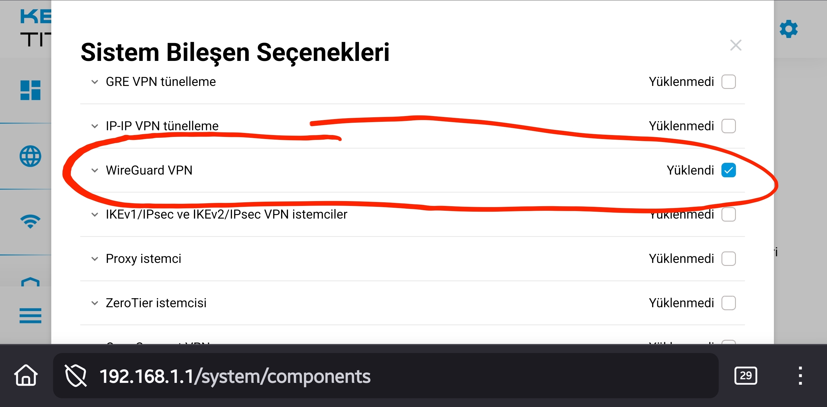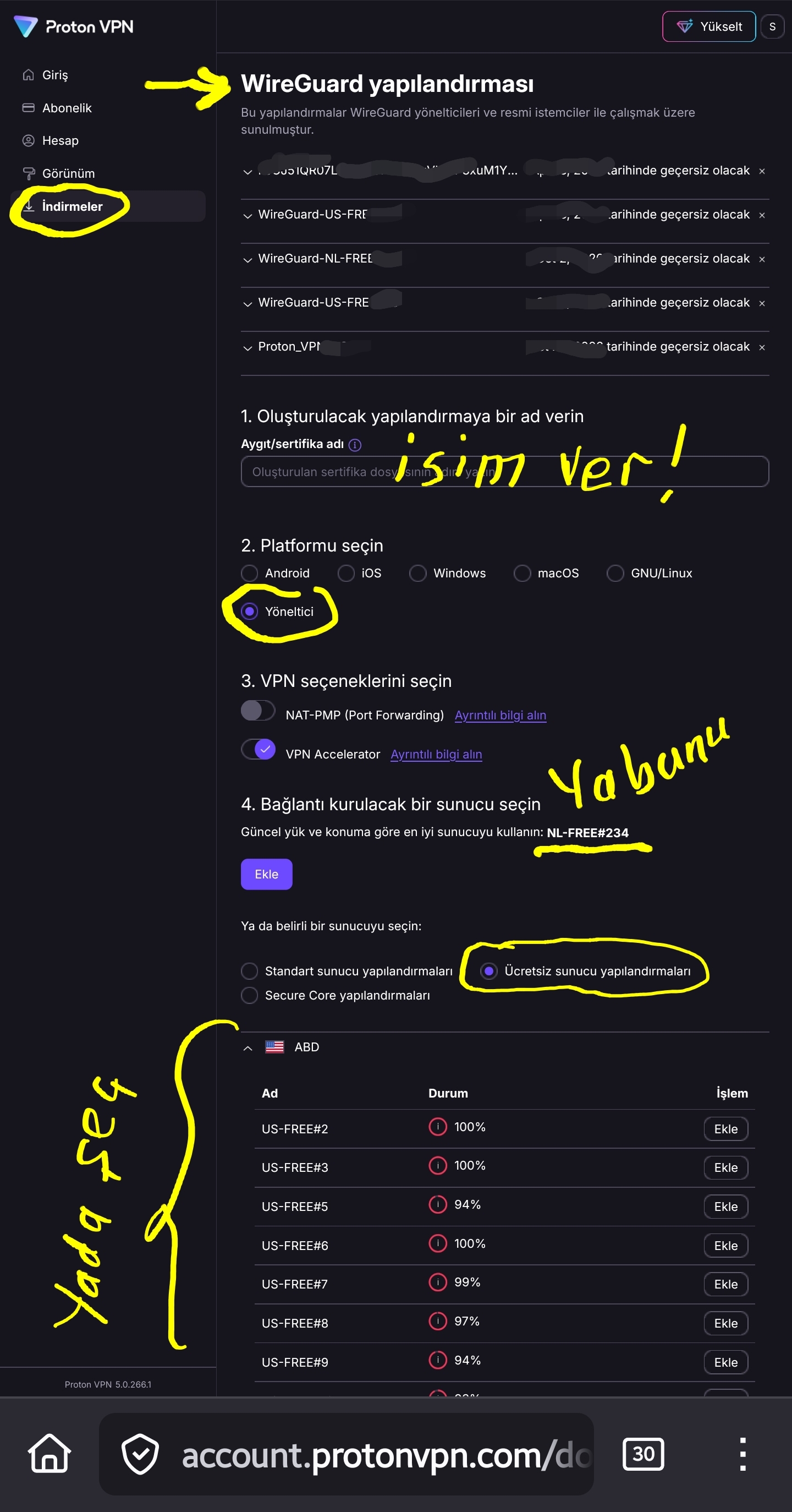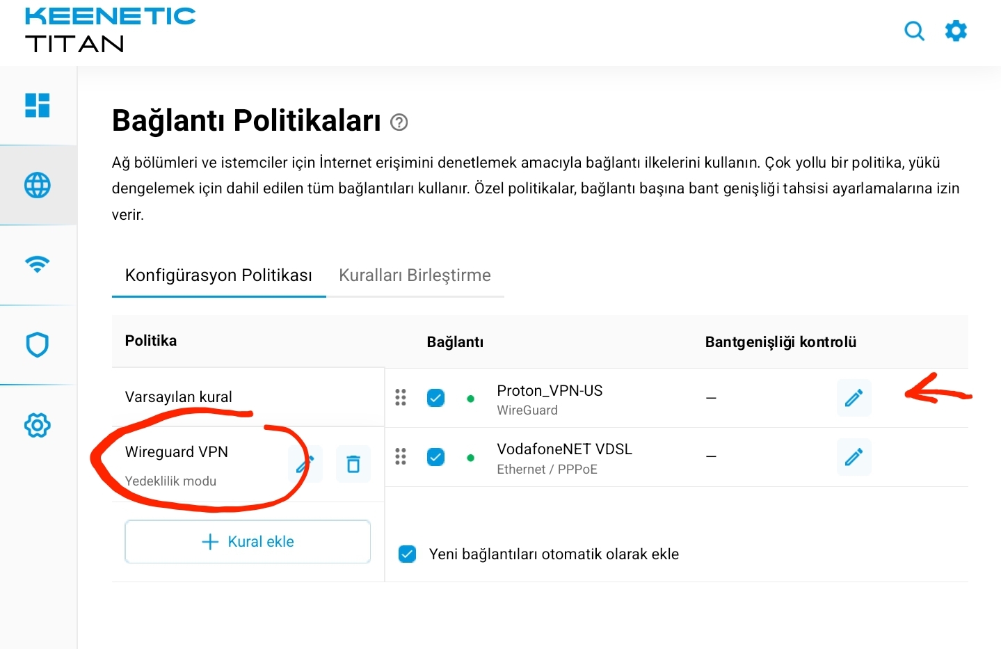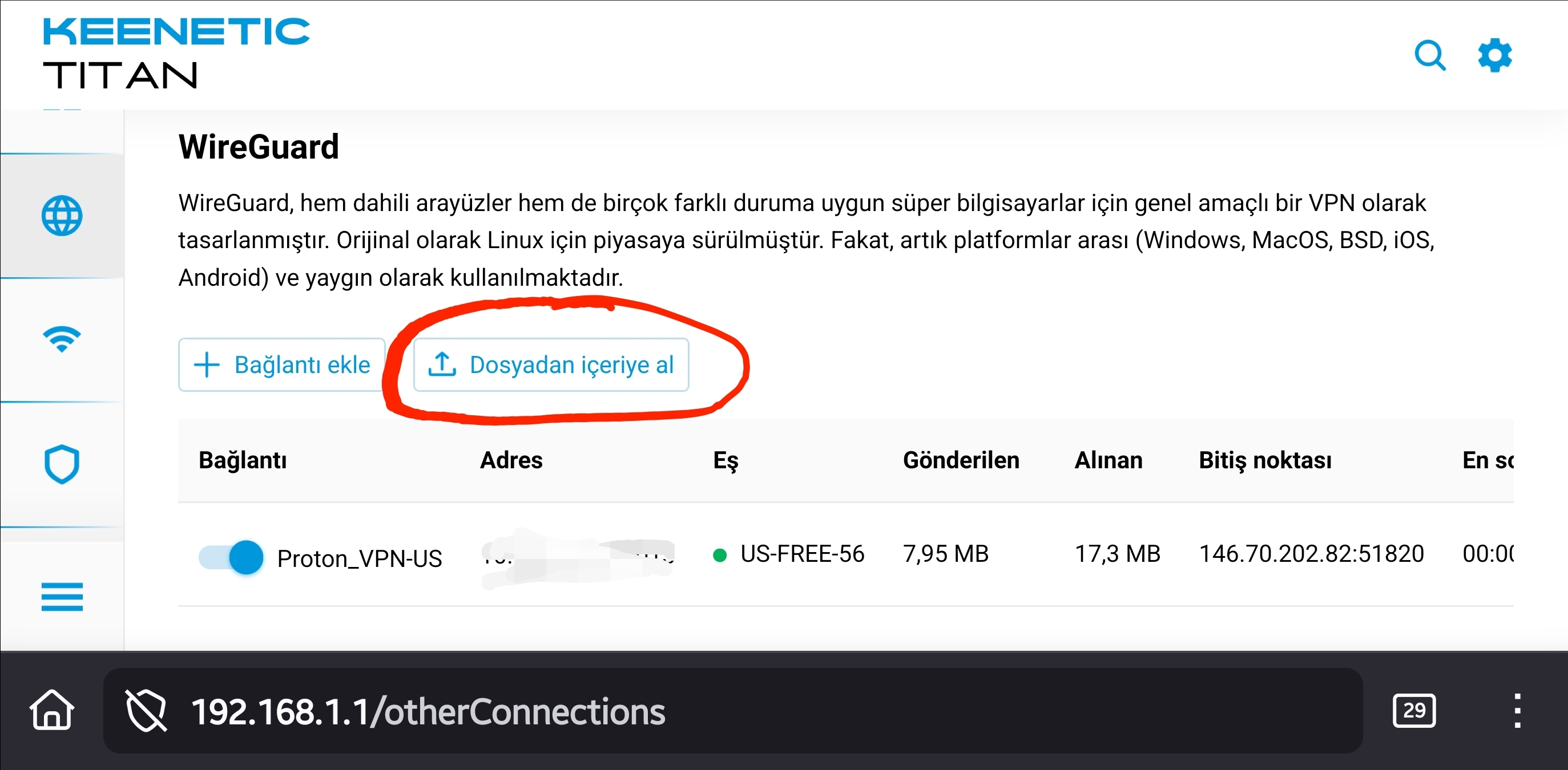 Bu işler için modeme yakın olmalısınız 😀... Öncelikle router'ın web arayüzündeki Sistem Ayarları'na gidin; Bileşenler'den Ağ fonksiyonları başlığı altındaki WireGuard hizmetini yükleyin: < Resime gitmek için tıklayın > Sonra Proton VPN web sitesine gidip ücretsiz bir hesap açın: https://protonvpn.com/tr Hesabınız oluştuktan sonra soldaki indirmeler sekmesinde WireGuard yapılandırmasında ücretsiz olanlardan ya size önerilen server'ın ya da sizin seçeceğiniz bir server'ın yapılandırma dosyasını oluşturup bilgisayarınıza indirin: < Resime gitmek için tıklayın > Bu dosyadaki ayarları Keenetic router'ınıza eklediğiniz WireGuard hizmetinde "Dosyadan içeriye al" yolu ile cihaza aktarıyorsunuz: < Resime gitmek için tıklayın > Sonrasında Bağlantı Politikaları'da bir WireGuard politikası oluşturduğunuzda artık ağınızdaki her cihaza tek tek VPN hizmeti verebilirsiniz: < Resime gitmek için tıklayın > Sistem yedeğini aldığımız sayfada "startup config" hem sistem yedeğini alır hem de geri yüklemeyi sağlar. Yedek alıp not defteri ile açıp arkadaşların yazdığı şekilde düzenleyip geri yüklerseniz ağdaki cihazların discord kullanımında sizin müdahelenize gerek kalmadan arka planda VPN üzerinden yönlendirme yapacaktır. Edit: SurfShark'ın rehberi var; rehberin Keenetic kısmı size yardımcı olabilir: https://support.surfshark.com/hc/en-us/articles/5858184000402-How-to-set-up-WireGuard-on-Keenetic-router |