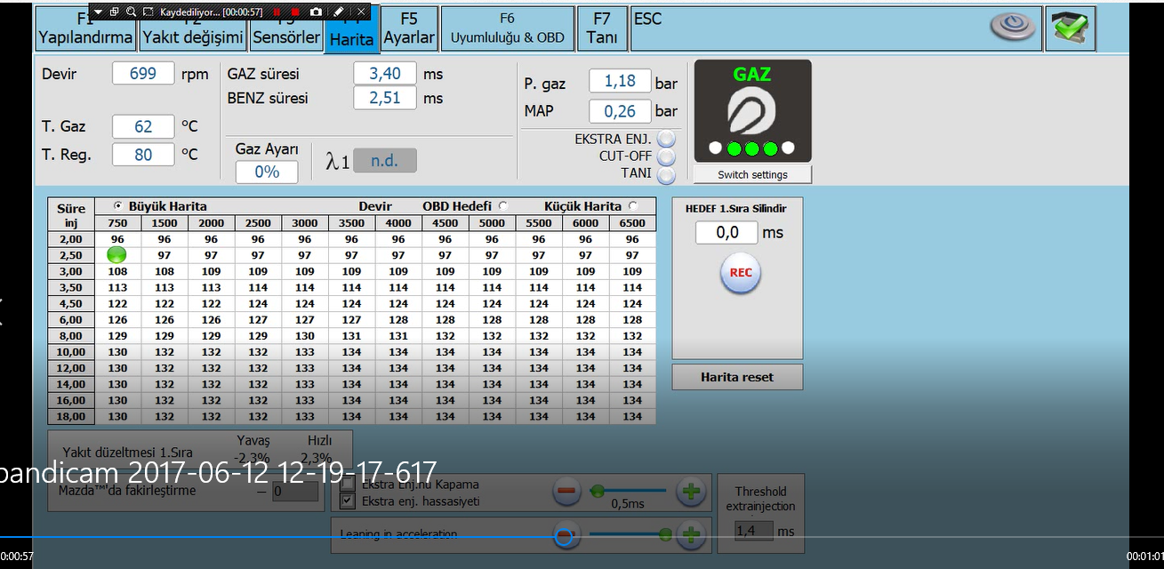 nasıl obd li kit bu? yüzde 10 fakirde çalışıyor araç. Programdan obd düzletme aktif edilmedi mi acba? video ekleyin bakalım. videoda lttf stft devir hız olsun ve belli devirde bir süre tutmaya çalışın aracı öyle kaydedin. örnek 1500 devir 30 sn sonra 2000devir 30sn 220 devir 30 sn 2500 devir 30 sn gibi. 4500 devire kadar yapmaya çalışın bakalım. Ekran kaydederken Pc ile meşgul olmayın! |