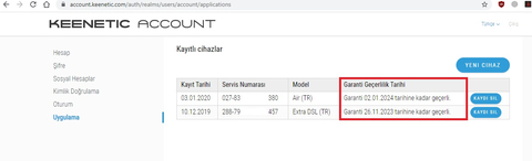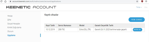 Keenetic ürünlerinin Türkiye'de garanti süresi 3 YIL, fakat buradan ürün seri no girişi yapılırsa 1 YIL daha Ek Garanti sürprizi sizi bekliyor.
