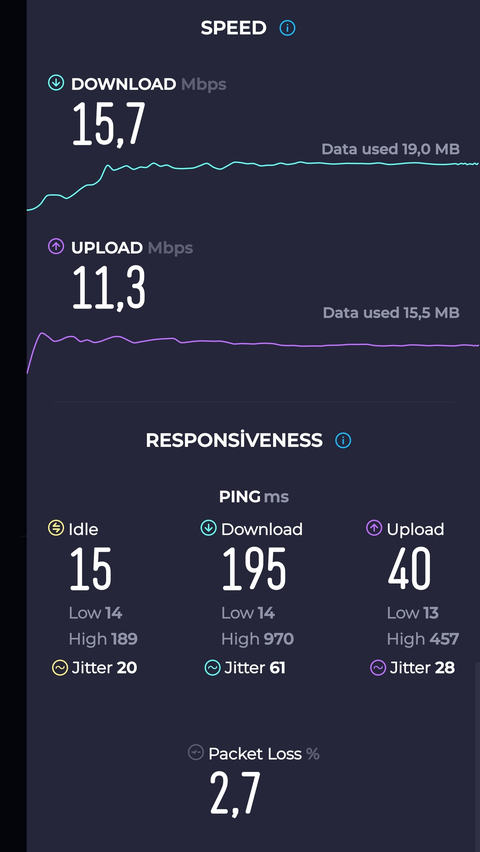 Sonuç: sinyal gücü biraz düşse de, internet erişimi ve video izleme gibi temel işlemler sorunsuzdur.