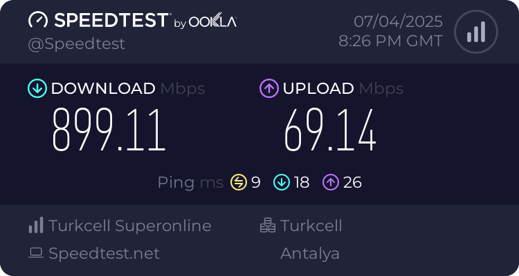 Bağlantı Tipi : Superonline 1000Mbit Fiber İnternet