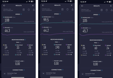Android uygulamaları kullanılmıştır. Hız testleri arka arkaya üçer kez yapılmıştır.