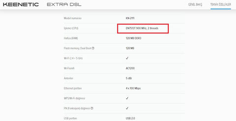 Wifi işlemcileri ; 2.4ghz MediaTek MT7592N (PCIe Gen 1), 5ghz MediaTek MT7612EN (PCIe Gen 1)