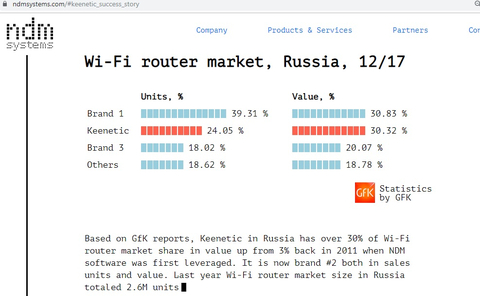 Bu arada Keenetic firması yeni kurulmuş olmasına rağmen 2017 verilerine g&#246;re rusya 2.6 Milyon adet modem/router pazarının