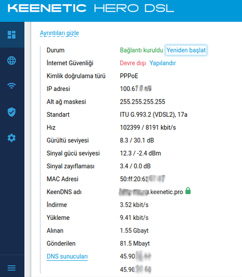 PPPoE bağlantınız için detayları açtığınızda aşağıdaki bölümü göreceksiniz.