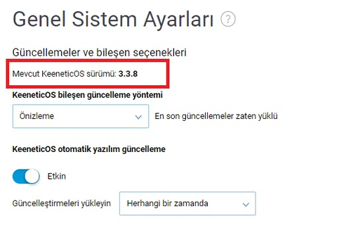Öncelikle yapmamız gereken bileşen özelliklerinde ilgili bileşenleri seçip, KeeneticOS'u güncellemektir.