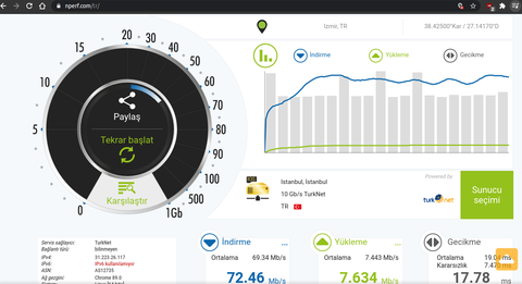 Windows ortamında Google Chrome web tarayıcısından hız testleri yapılmıştır. (Dizüstü testleri sadece "X" konumunda yapılmıştır.)