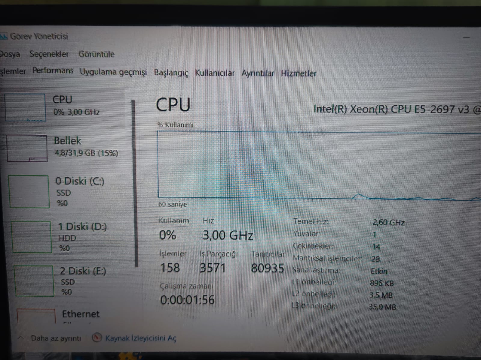 2011 v3 olup uzerıne xeon e5 2697 v3 14 cekırdek 14 sanal 28 cekırdek ıslemcı vardır 4 ram slotlu quad channel olarak calısmaktadır..