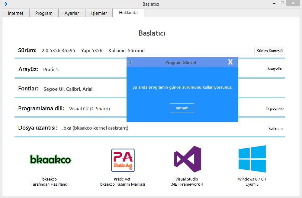 - Bilgiler sekmesi hakkında olarak isimlendirildi ve bu sekmeye teşekkür penceresi için buton eklendi.