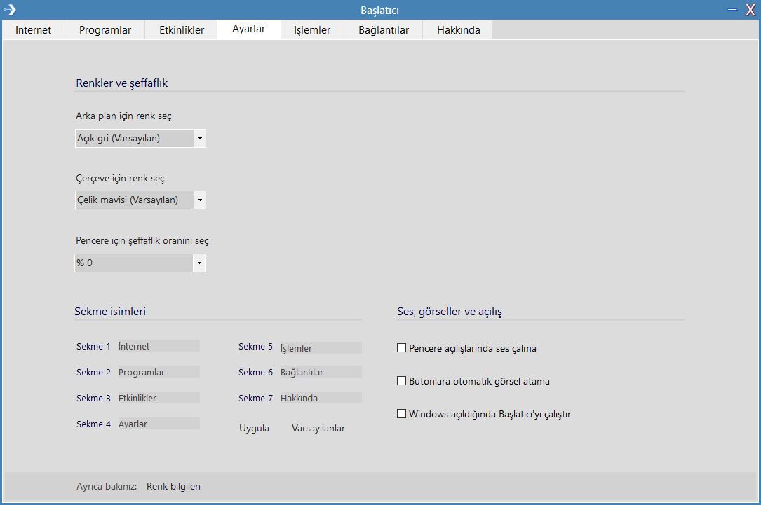 - Ayarlar sekmesi yeniden düzenlendi. Renk ve opaklık seçimi daha sistemli ve düzenli hale getirildi.
