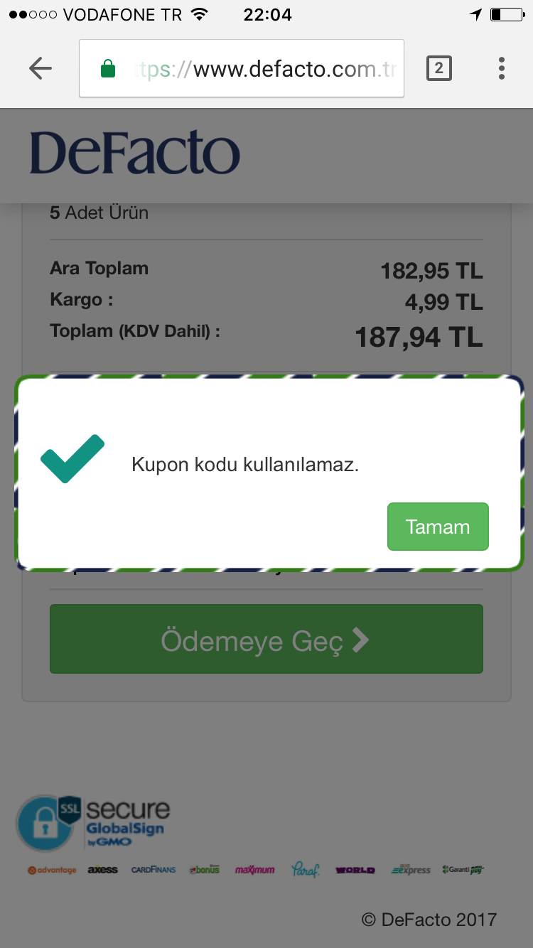 Şansa bak. Tam düştü, ödeme kısmına geldim fiyatı arttırdı ve kupon geçersiz dedi. Kahretsin