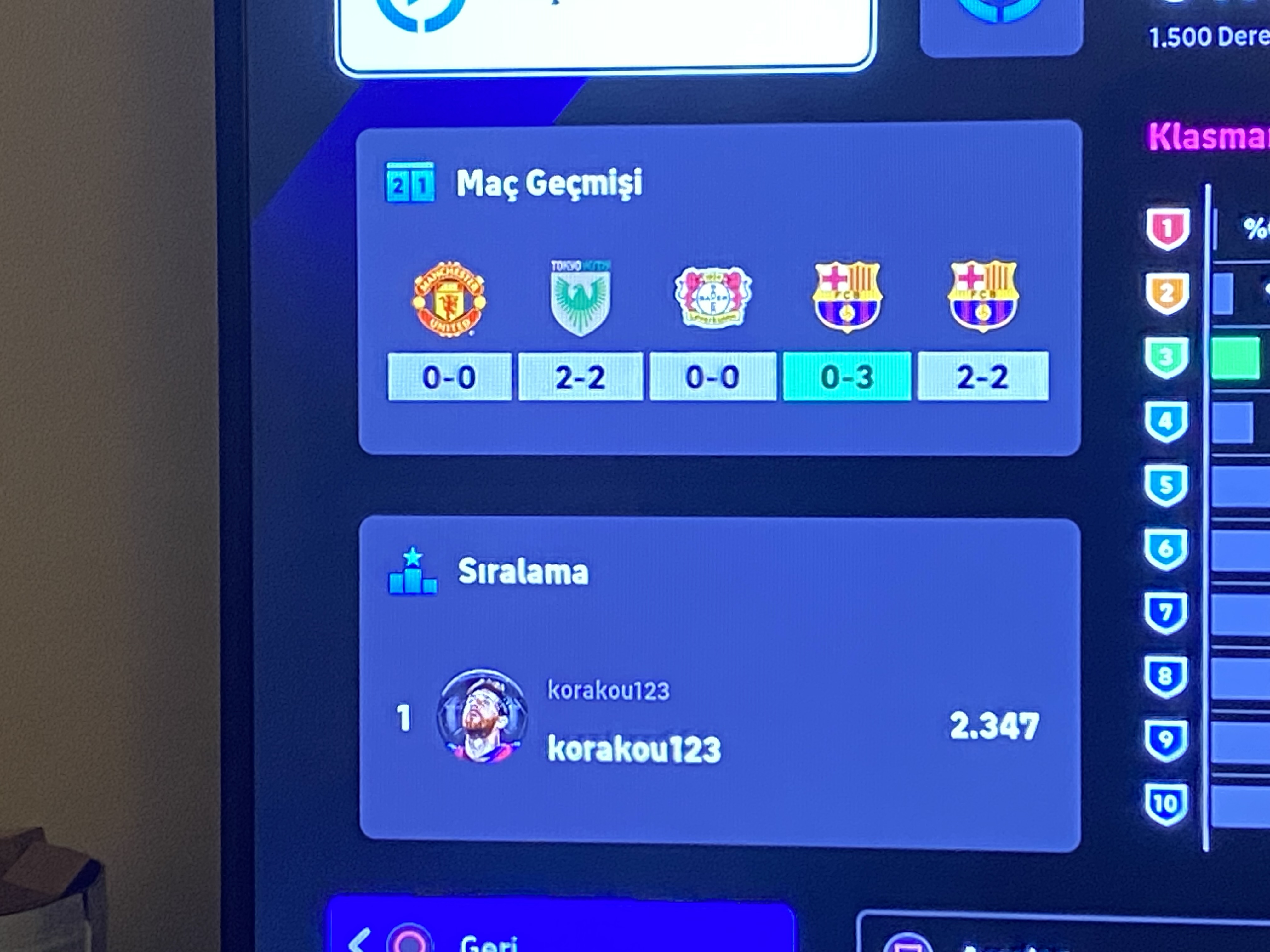 Bu sabah coins etkinliğinde bi rakip geldi La liga kadro gücü 3040 benim ise 3140 ama adam net bi oyunla ve skorla beni 2-0 tokatladı, inanılmaz soğukkanlıydı. Baktım profiline 4.klasmandan öteye gidememiş, benim ise 5 kere klasman 1 görmüşlüğüm var fazla girmesemde klasmana. Bu oyunda bazı şeylere anlam veremiyorum gerçekten, bu arada ispanyoldu