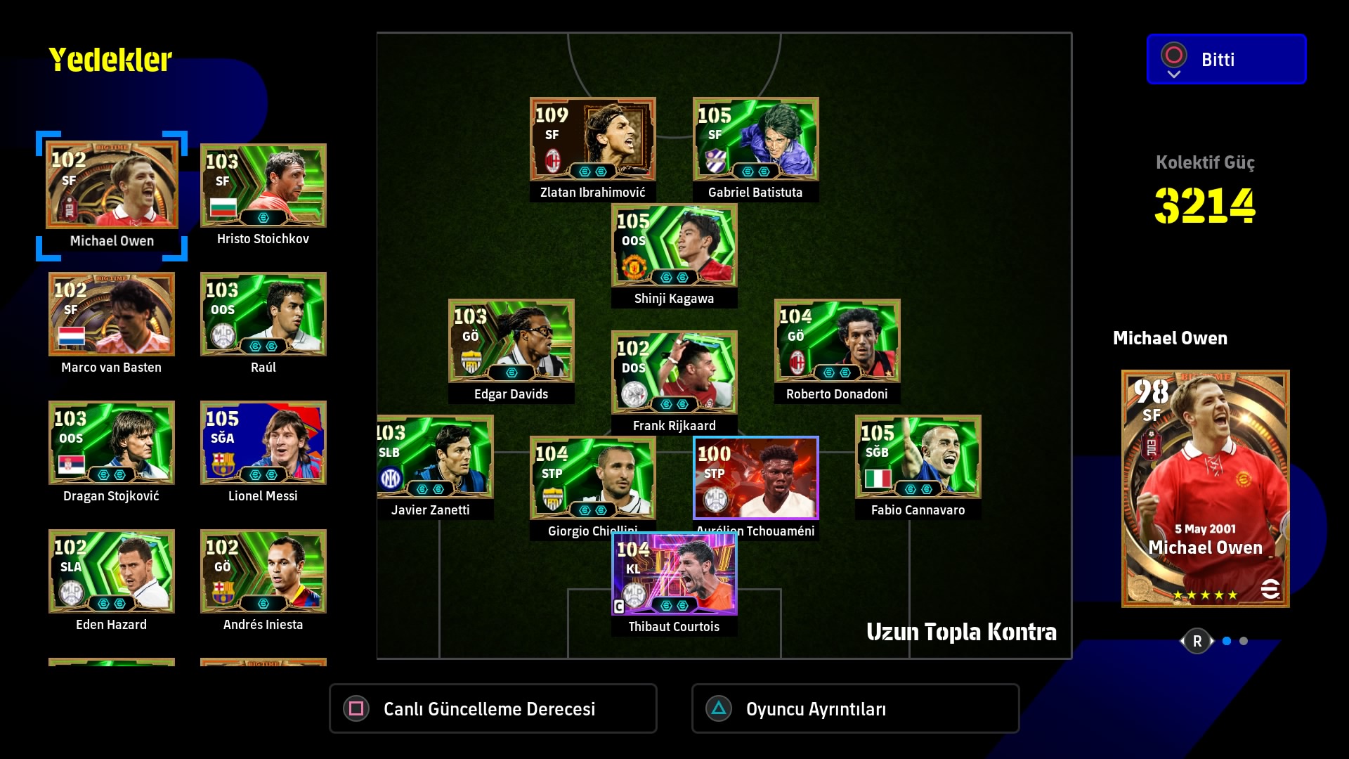 | Konami işi paraya fazla döktü. Artık 100 overall oyuncularla 108 cruyff İbrahimoviç Messi falan durduramıyoruz. Bir durduruyorsun iki durduruyorsun bir şekilde gol geliyor. Güncelleme sonrası keyif vermiyor. 1 hafta sonra nerflemeye başlıyor genelde bu durdurulamaz oyuncuları. Bir zamanlar Eto, Batistuta, Pele vardı bu aralar 108 Cruyff her türlü gole gidiyor. |