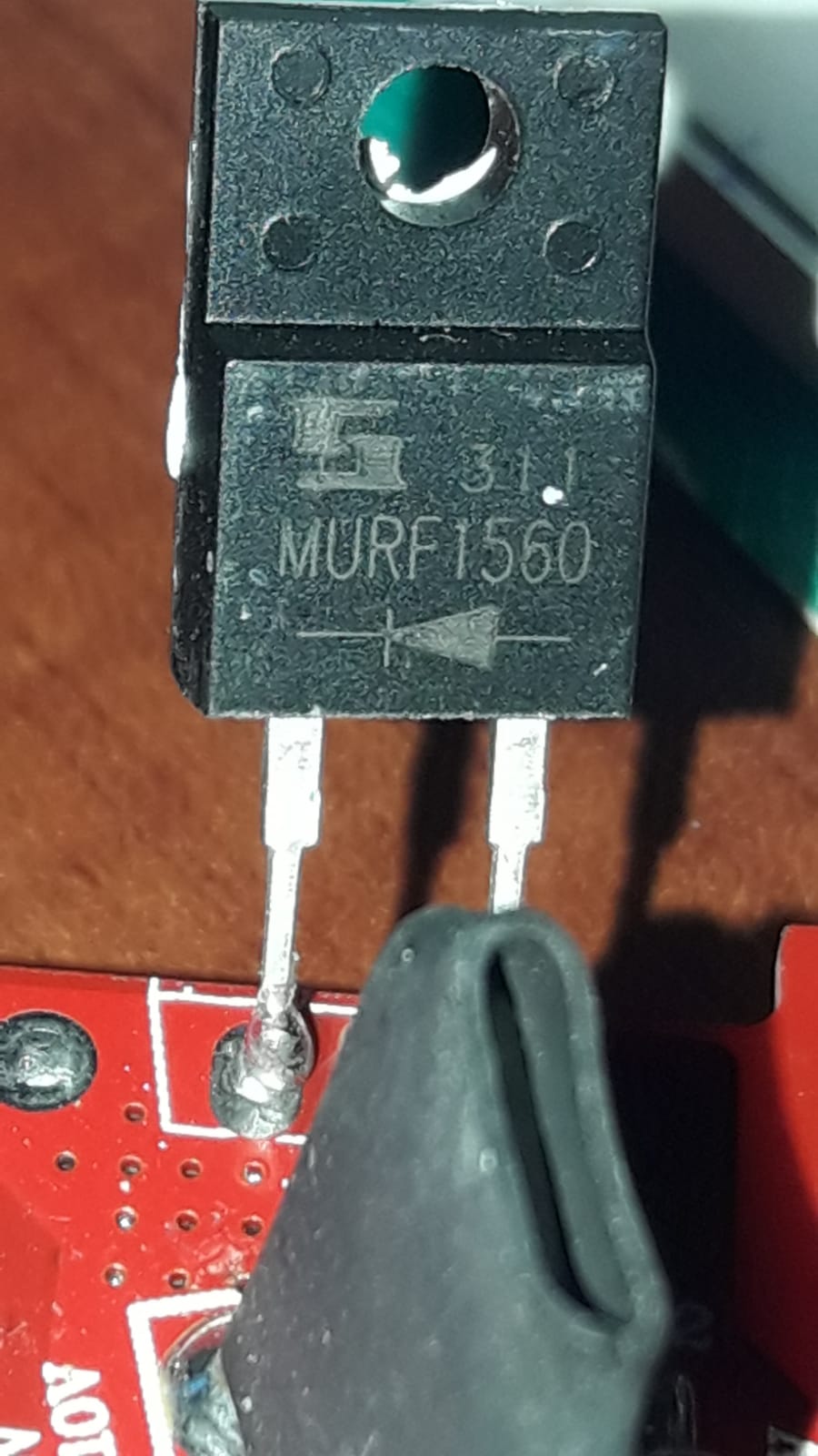 15A lik 600 V hızlı diyot takabilirsiniz.  https://www.ulutaselektronik.com/urun/u1560-mur1560-to-220-2-15a-600v-ultrafast-dyot IGBT transistör olarak https://www.ulutaselektronik.com/urun/ixgh40n60c2d1-to-247-75a-600v-300w-igbt-transistor Zener diyot olarakta bunu kullanın. https://www.ulutaselektronik.com/urun/1n4744a-15v-1w-zener-diyot Anakart pek yabancı gelmedi. Motor DC 180 V. PWM kontrol ile çalışmaktadır.  |