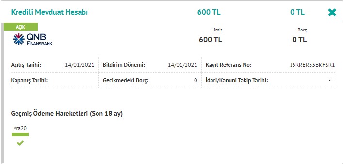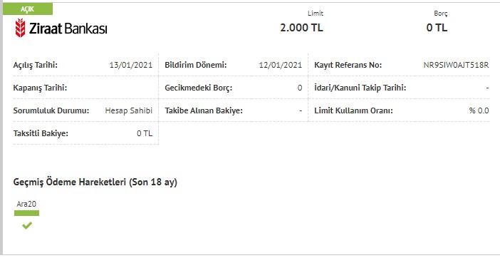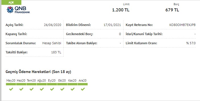 Ocak 2021 tarihinde Enpara KK ve KMH varken Garanti, Ziraat ve Akbank başvurusunda da bulundum. Akbank 200 TL onayladığı için kapattım. Sanırım findeks raporundan sonra alıp kapatmış olmalıyım. Hem fazla ürüne başvurarak hem de borç limit oranını bilmeden oluşan findeks notumu aşağı atmışım. Görsellerdeki rapor tarihine dikkat edelim.