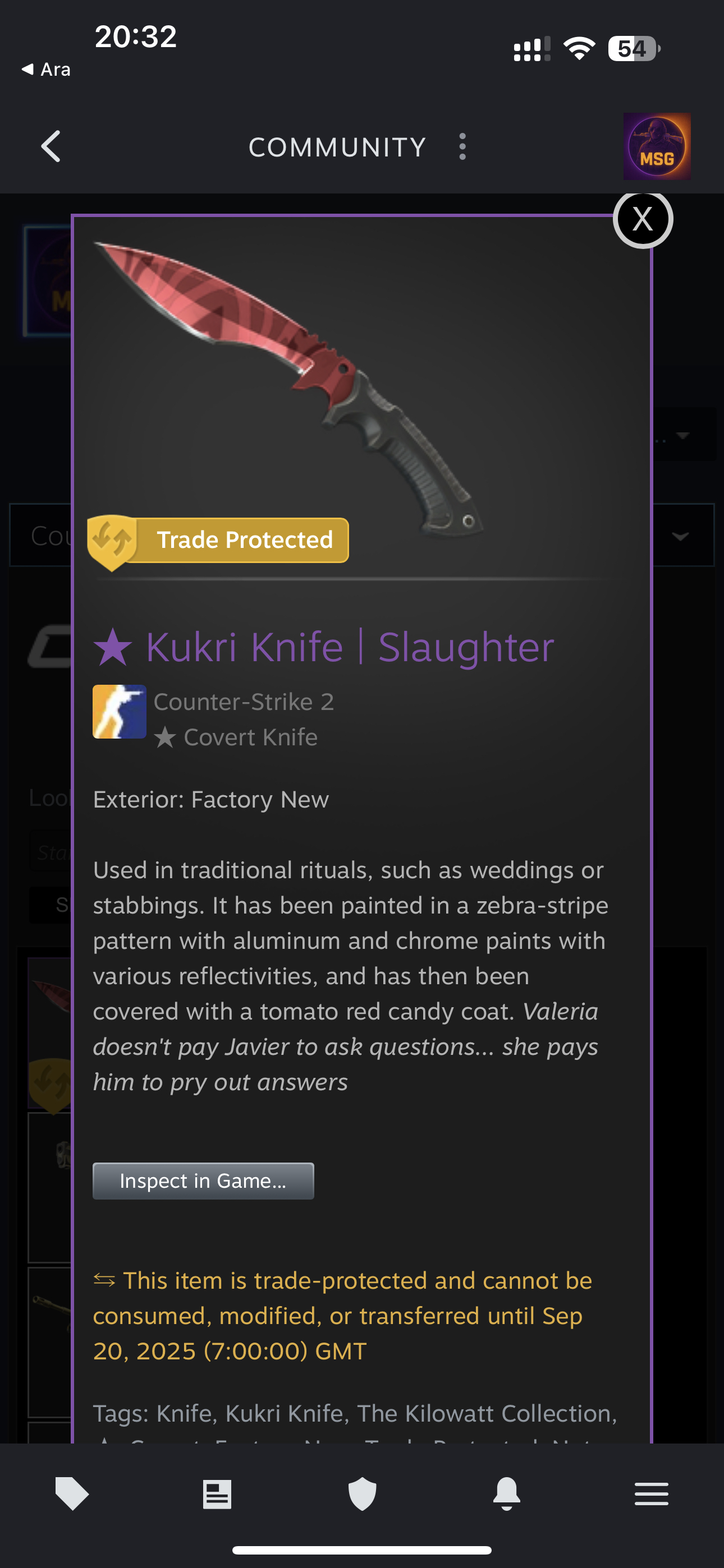★ Kukri Knife | Slaughter FN 0.043 Float SATILIK