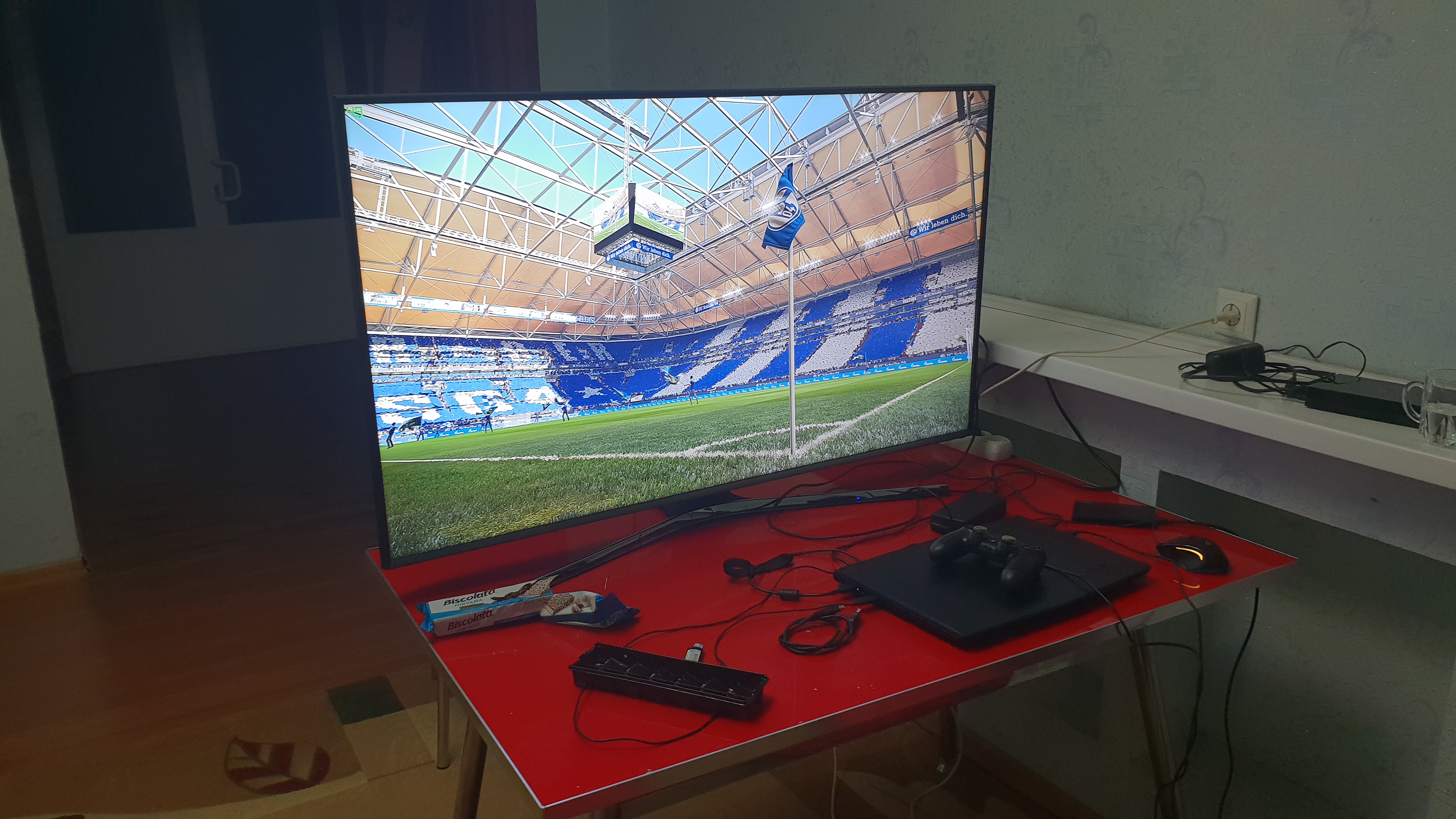 | Ben öyle yapıyorum 49 inç axen TV ye hdmi ile bağlıyorum monsteri steam den pes 2019 aldım 2 tane logitech kablosuz oyun kolu da var miss |