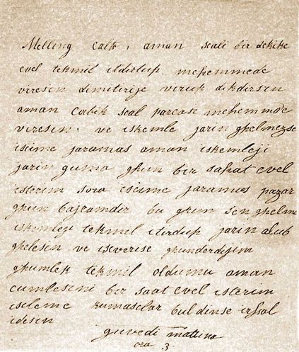 Yaklaşık 350 sene önce sarayda da kullanılmıştı Latin harfleri. Önce meşhur Bobowski tarafından sonra da 3. Selim'in kızı Hatice Sultan ile Melling arasındaki mektuplaşmada da kullanılmıştı.