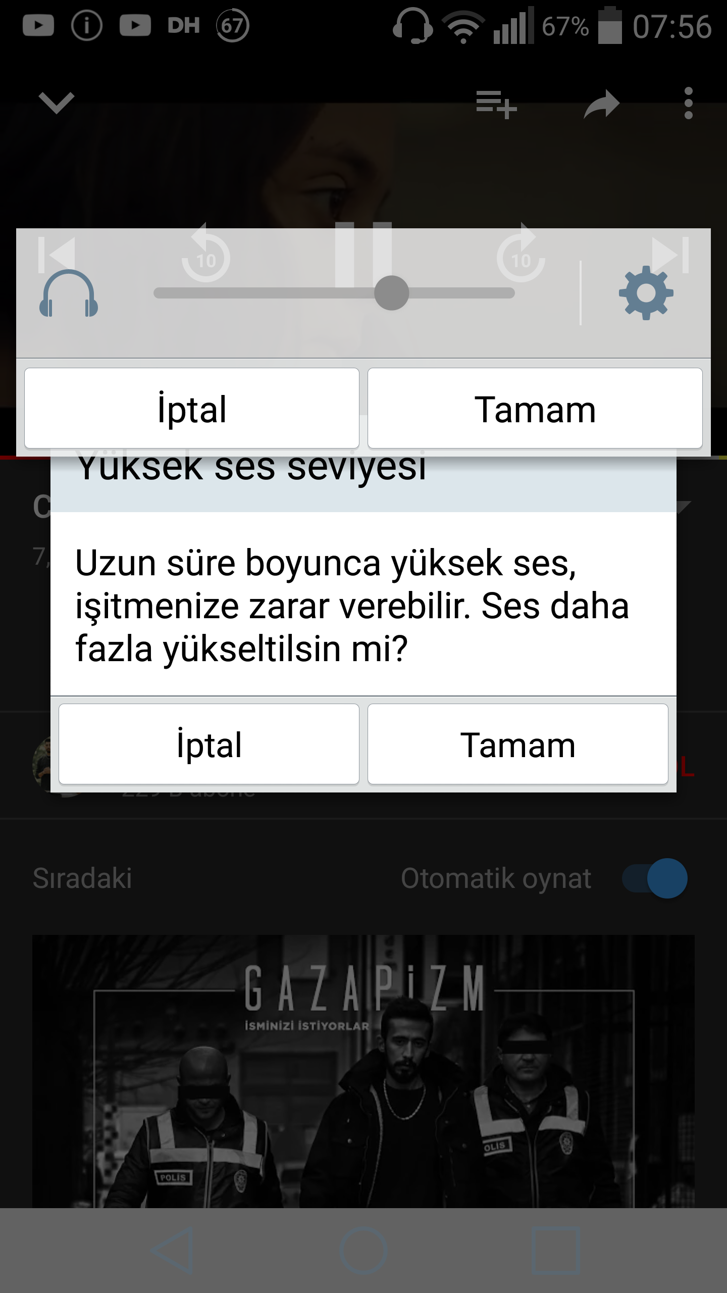 Mesela kulaklıkla müzik dinlerken ses seviyesini arttırdığımız zaman uyarı geliyor belirli ses seviyesinin üzerine çıkasım mı diye tamama basmak istiyorum ama basılmıyor