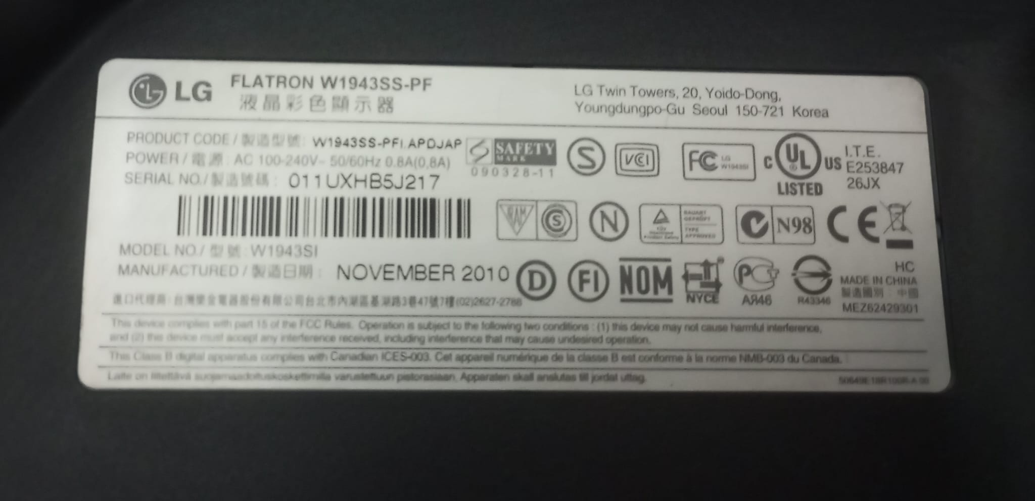 Marka Model: LG W1943SS-PF