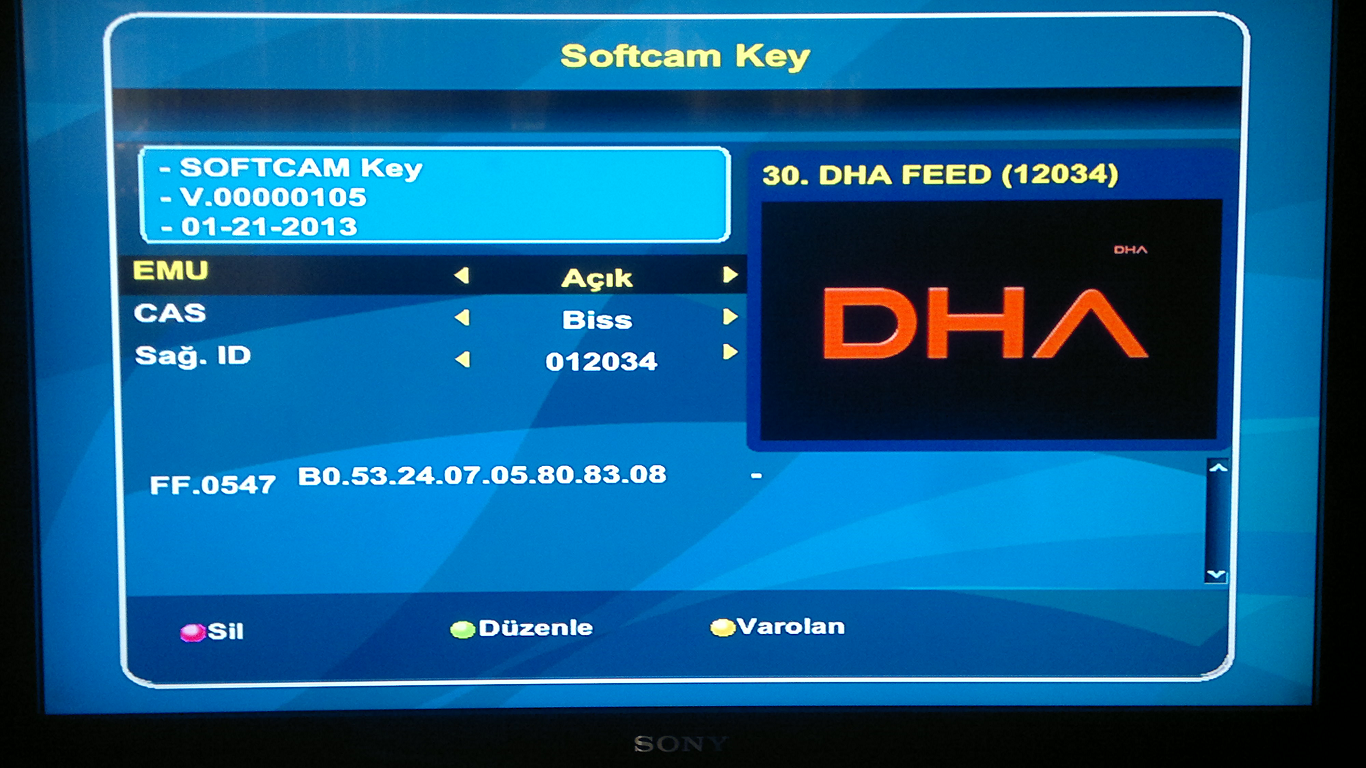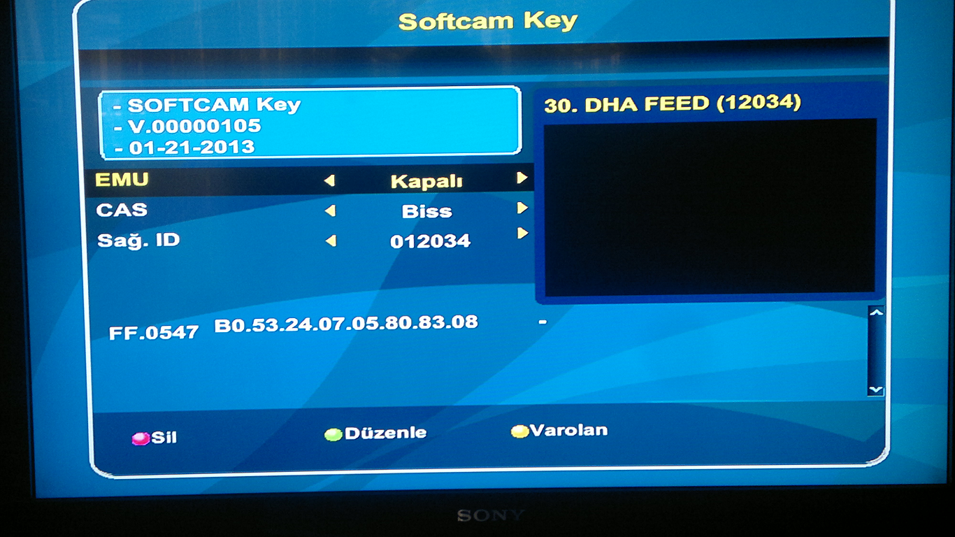 · DHA FEED kanali için biss key girmeyi tarif ediyorum.