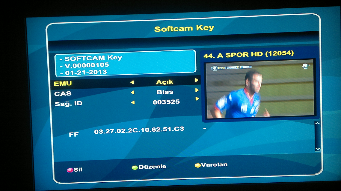 Paylastigim yazilimda yerli yabanci sifreler var. Oku kaydirirsaniz yukarda kanal isimlerini göreceksiniz. Zaten 4a'dan sonra düzenlemeniz gerekiyordu. Ilk mesajda anlattim. Biss sifrelerini tek tek tekrar ekleyin. 4a ya geçisten sonra yeni bir yazilim yayinlanirsa onda yerlesik gelirler. O zamana kadar kendiniz ekleyeceksiniz mecbur.