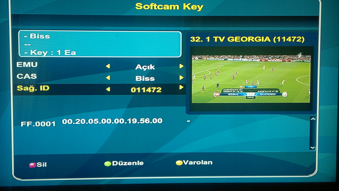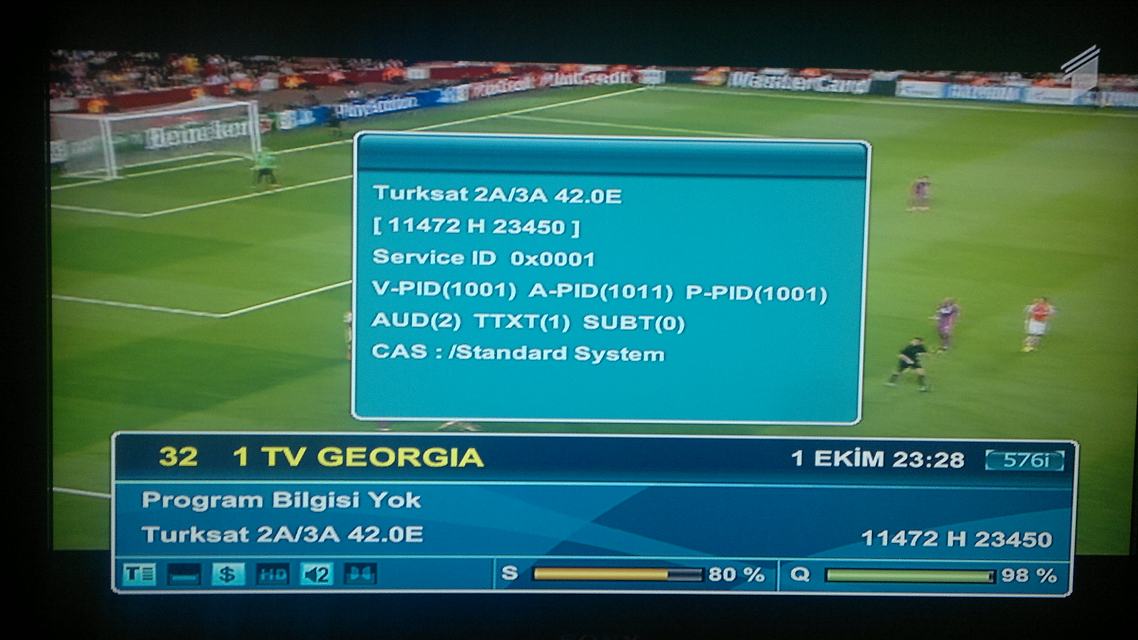 İlk mesajda 1TV GEORGİA GÜRCİSTAN kanalının ekran görüntüleri var. Maç saatleri şlifreye giriyor. Rustavi 2 kanalı da zaman zaman maçları yayınlıyor. Aynı frekansdan yayın yapıyorlar. 1TV GEORGİA kanalının şifresini eklediysek Rustavi 2 kanalı için şifreyi ekle değil de güncelleme (yeşil tuş) yapıyoruz. Şöyle; < Resime gitmek için tıklayın > < Resime gitmek için tıklayın > < Resime gitmek için tıklayın > < Resime gitmek için tıklayın > < Resime gitmek için tıklayın > |