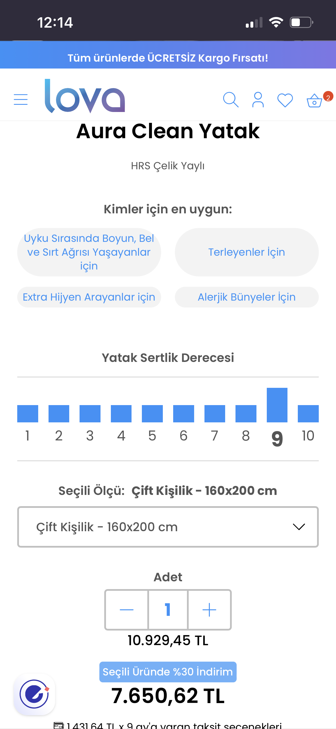 Şuan indirimde olan birkaç yatak daha var ekran görüntüsünü ekliyorum. Ayrıca online alınabilir. Almak isteyenler acele etsin.