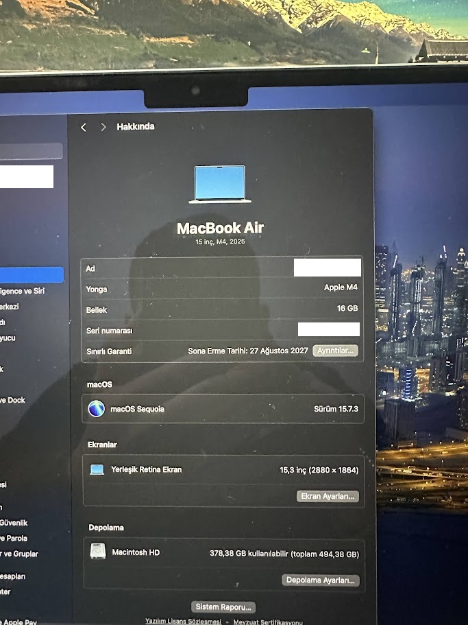 1MACBOOK AİR M4 16GB 512 GB SSD 15" Gümüş (9 devir, bol ekstralı)