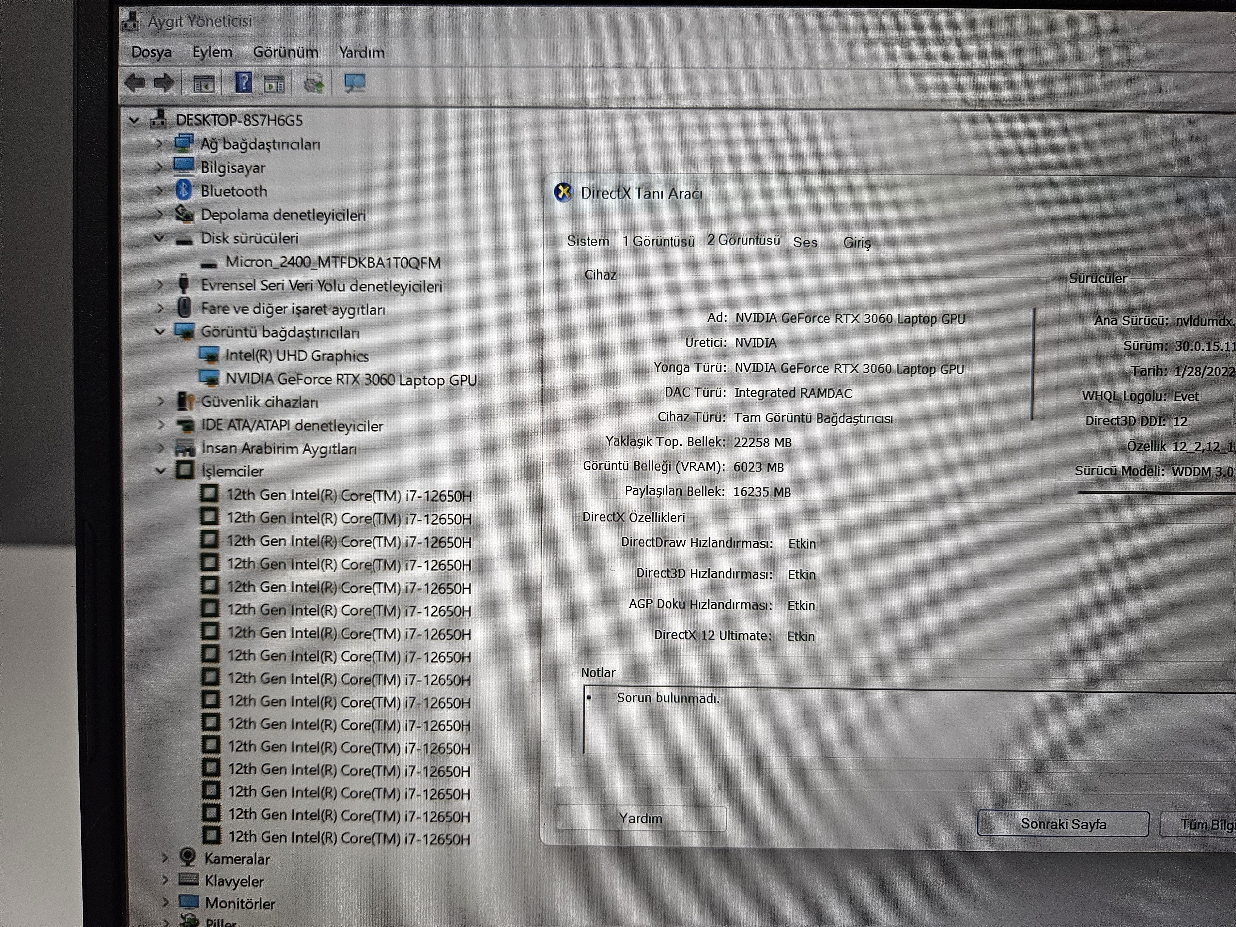 MSİ İ7 12.NESİL + 32 GB RAM + 1 TB SSD + RTX 3060 6 GB + TEMİZ.
