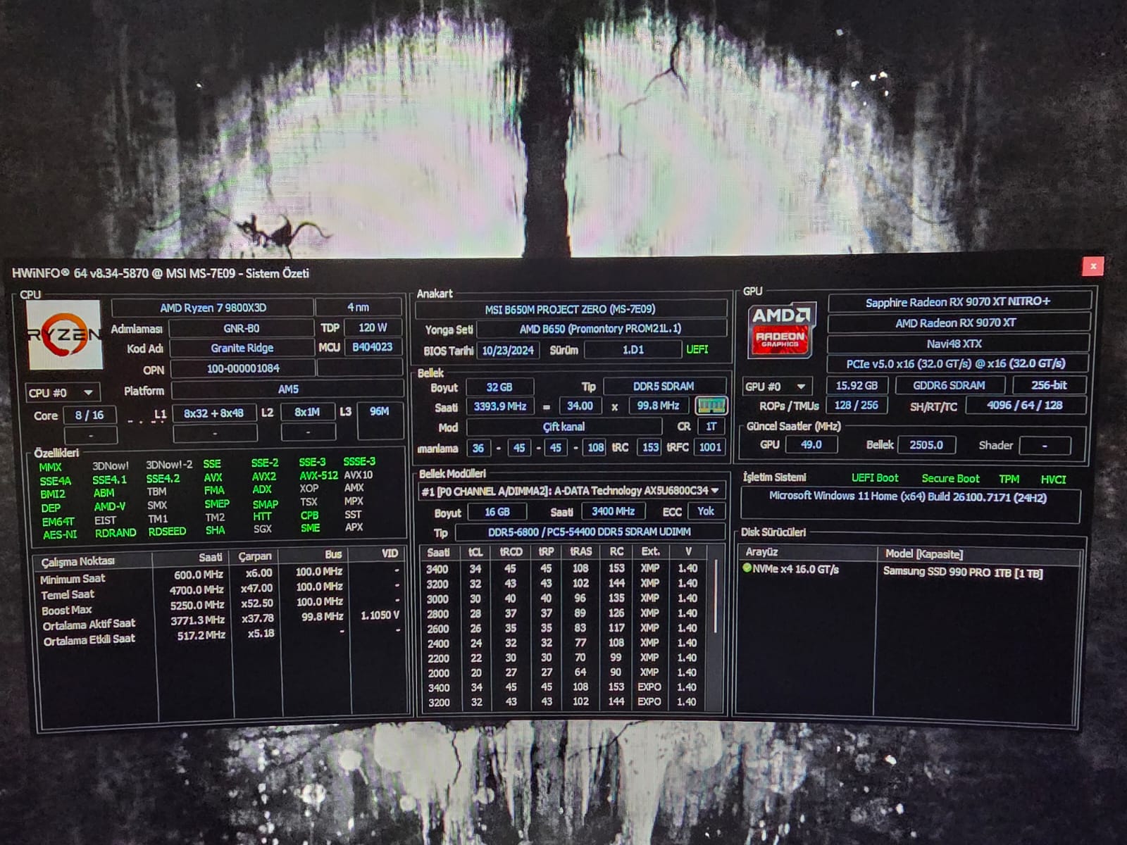 MSI Project Zero Harika Sistem Ryzen 7 9800X3D RX 9070 XT ...