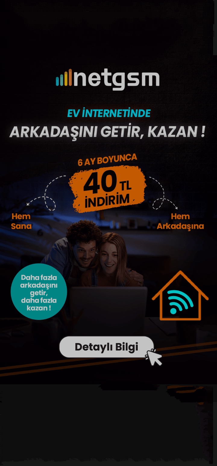 Merhaba, Buradan başka bir arkadaşın kodu ile netgsm ailesine katıldım. Fiyat Performans olarak en uygun bu görülüyor diye tercih ettim. 100Mbps hız 339 tl. Bu kodu abone olurken müşteri temsilcisi ile paylaşırsanız, 6 ay boyunca hem siz hem ben fatura tutarından 40 TL indirim alırız. Her arkadaşını sizde getirdiğinizde ayrıca 40tl faturanızdan düşülüyormuş. Geçiş yapanlar için aktivasyon vb. ekstra ücret alınmıyor. Referans Kodum : NTGGGXQ309 link üzerinden Başvuru: sabitintoim.netgsm.com.tr/yenibasvuru?refno=NTGGGXQ309 Tavsiye olarak telefonla +908503090309 arayarak arayıp geçiş yapmanızı öneriyorum. Daha hızlı geçiş yapıyorsunuz. Telefonla başvururken kimlik seri numarasını istiyorlar ve netten uygulamaya girdirip oraya kimlik fotosunu çekip atmanızı istiyorlar. O yüzden kimlik elinizde olsun. Ayrıca edevletten onaylamanız için yönlendiriyorlar. Telefonda referans kodunu söylemeyi unutmayın, yoksa indirimden faydalanamazsınız. Engelli %40 raporu olanlara ayrıca %25 indirim yapıyorlar. Ref kodumu kullanan arkadaşlara şimdiden teşekkürler... |