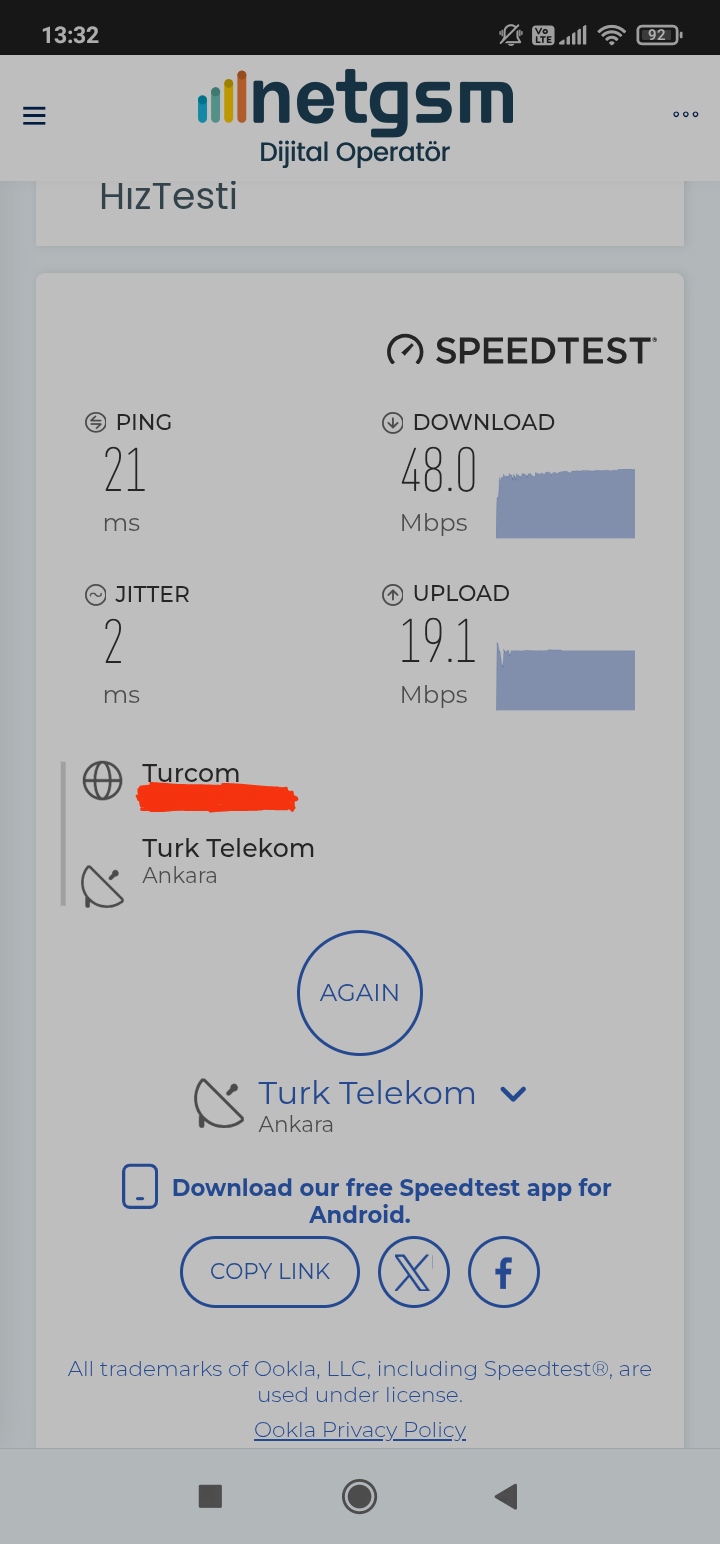 < Resime gitmek için tıklayın > Telefondan kablosuz baglanti hızım Hiz gayet yeterli. ikimiz icin de indirim Kod : NTGOOGZSB6 Başvuru: sabitintoim.netgsm.com.tr/yenibasvuru?refno=NTGOOGZSB6 |