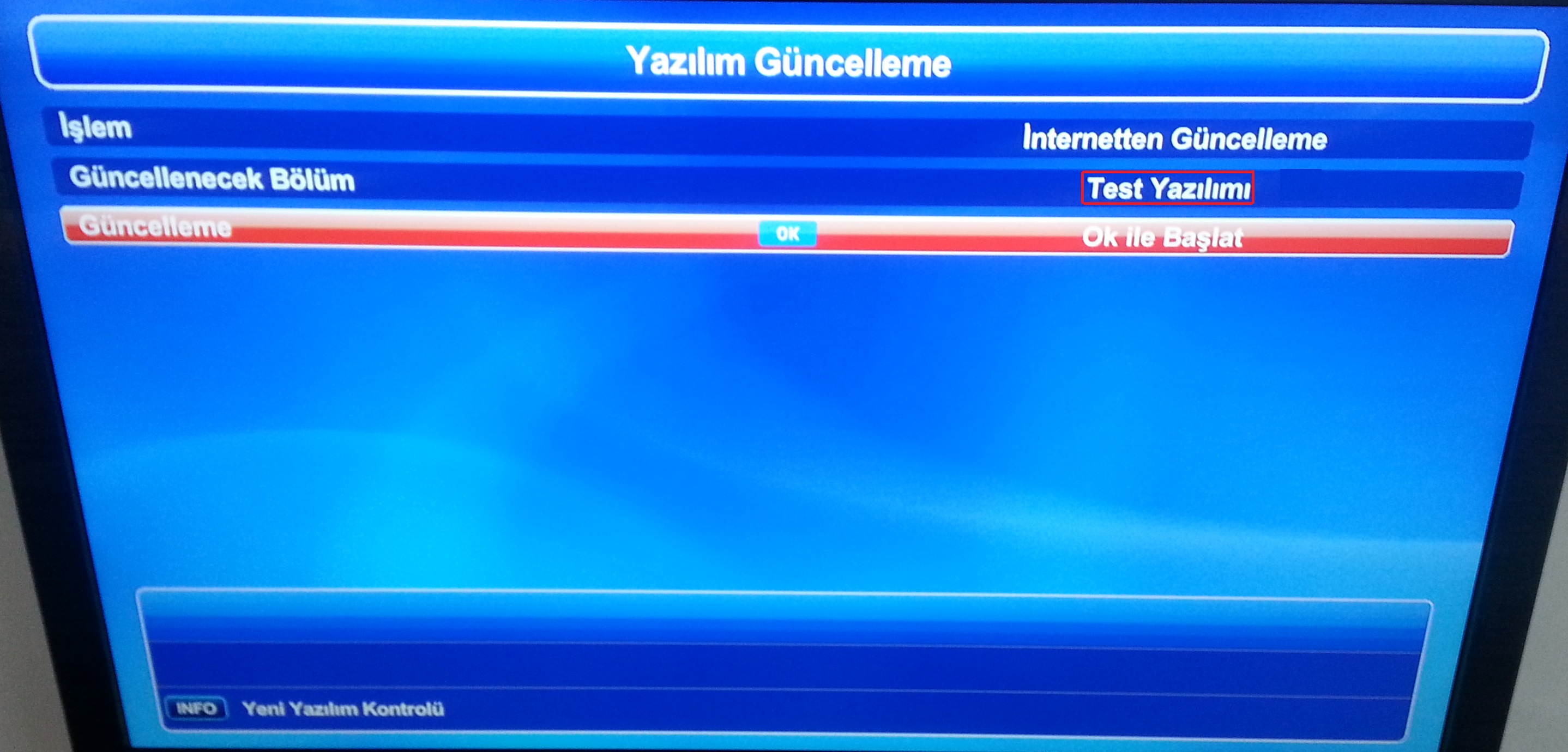 menü ayarlar bölününden online yazılım , softcam , key güncelleme özelliği