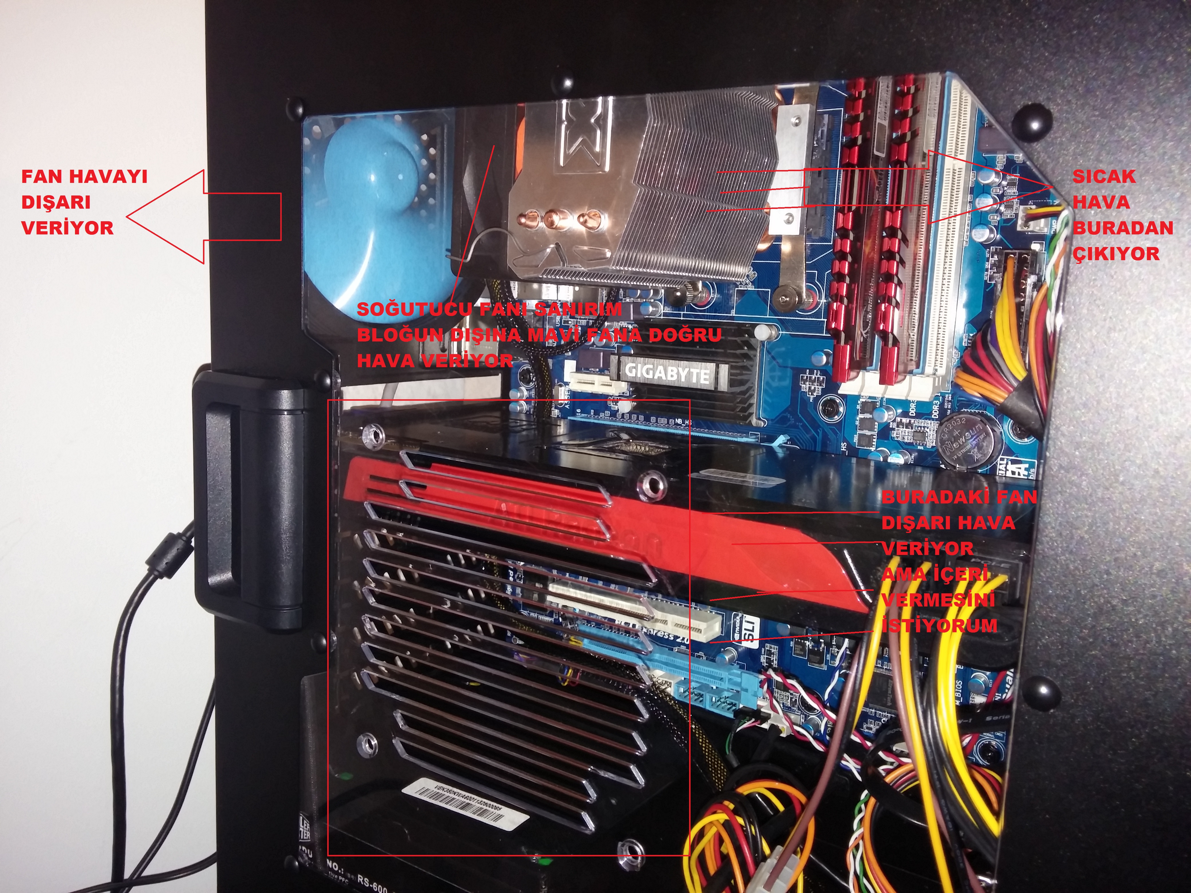 Merhaba kardeşim. Bugün işlemci soğutucusunu ve fanları aldım ve taktım bilgisayara. Ancak birkaç kafama takılan nokta var. Bunları da sana çektiğim fotoğraf üzerinden anlatacağım.