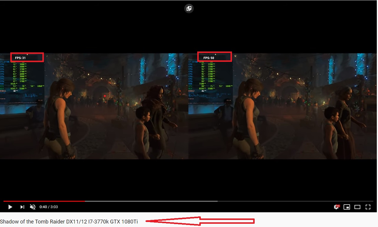 Shadow tomb raider bu oyunda ilginç bir şekilde ilk maskeli balo sahnesinde bazı yerlerde fps 55 üstüne kesinlikle çıkmıyor, burda gpu kullanımı ile ilgili bişey farkettim 1080p de oyun dediğim sahnelerde %60 gpu kullanımı ve 55 frame alıyor, dsr açık 2k ya alıyorum gpu kullanımı %90 lara çıkıyor ama fps yine 55 lerde,