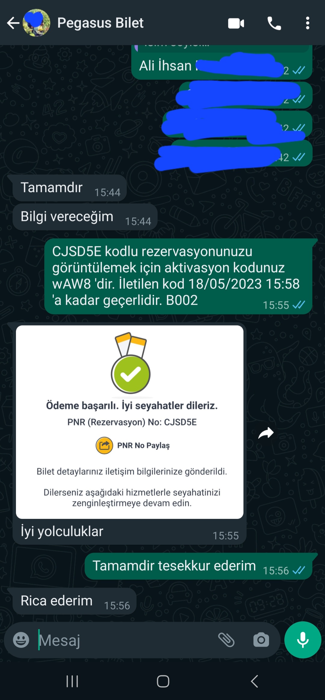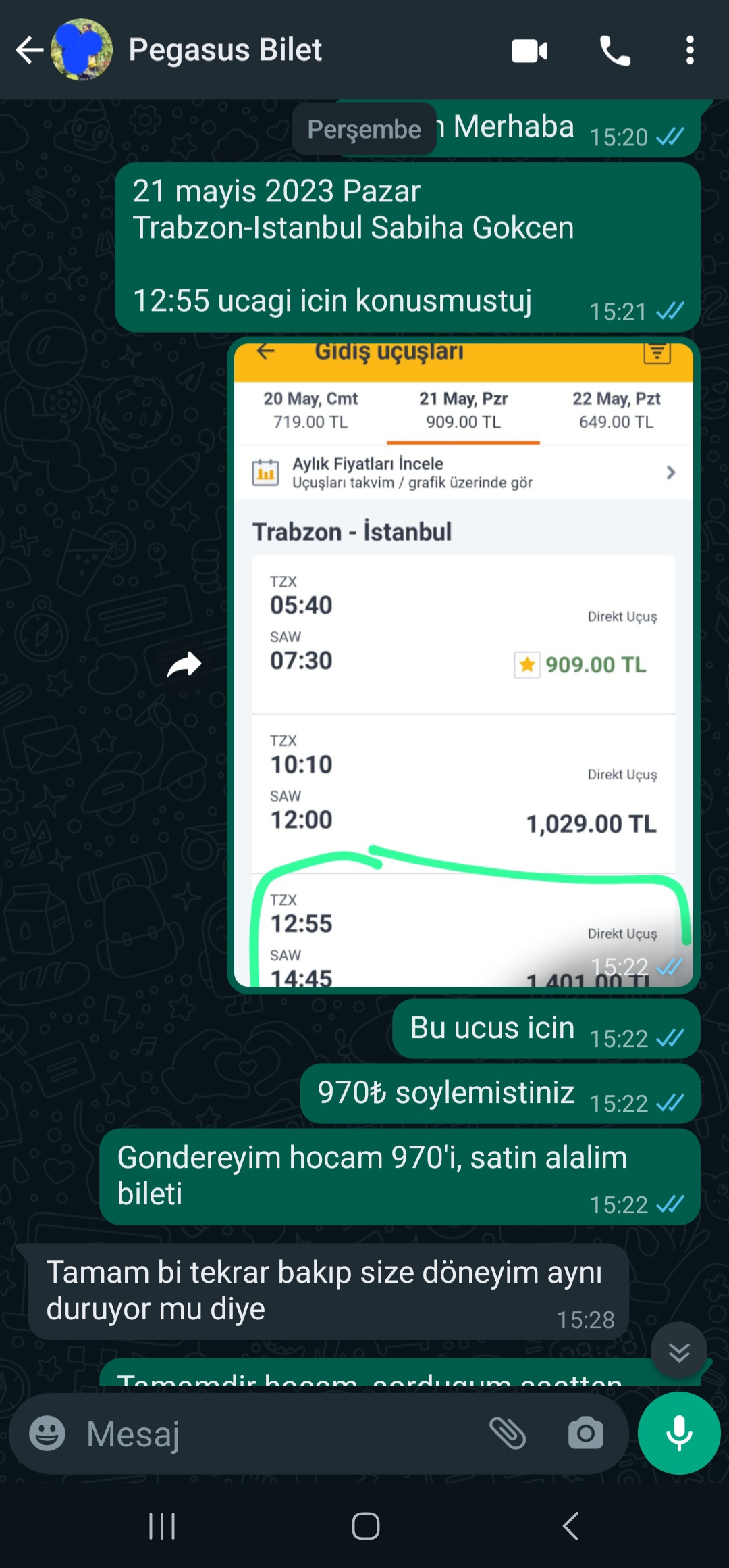 21 Mayis 2023, Trabzon-Istanbul ucusunu arkadastan aldim. Iletisimi once PM, sonrasinda da WP uzerinden devam ettik. Ucusumu sorunsuz gerceklestirdim. WP konusmamizdan bir kesitler ve Pegasus ucusunun gerceklestigine dair ekran goruntulerini de paylasiyorum. Saticiya ilgisinden dolayi tesekkur ederim. < Resime gitmek için tıklayın > < Resime gitmek için tıklayın > < Resime gitmek için tıklayın > < Resime gitmek için tıklayın > |