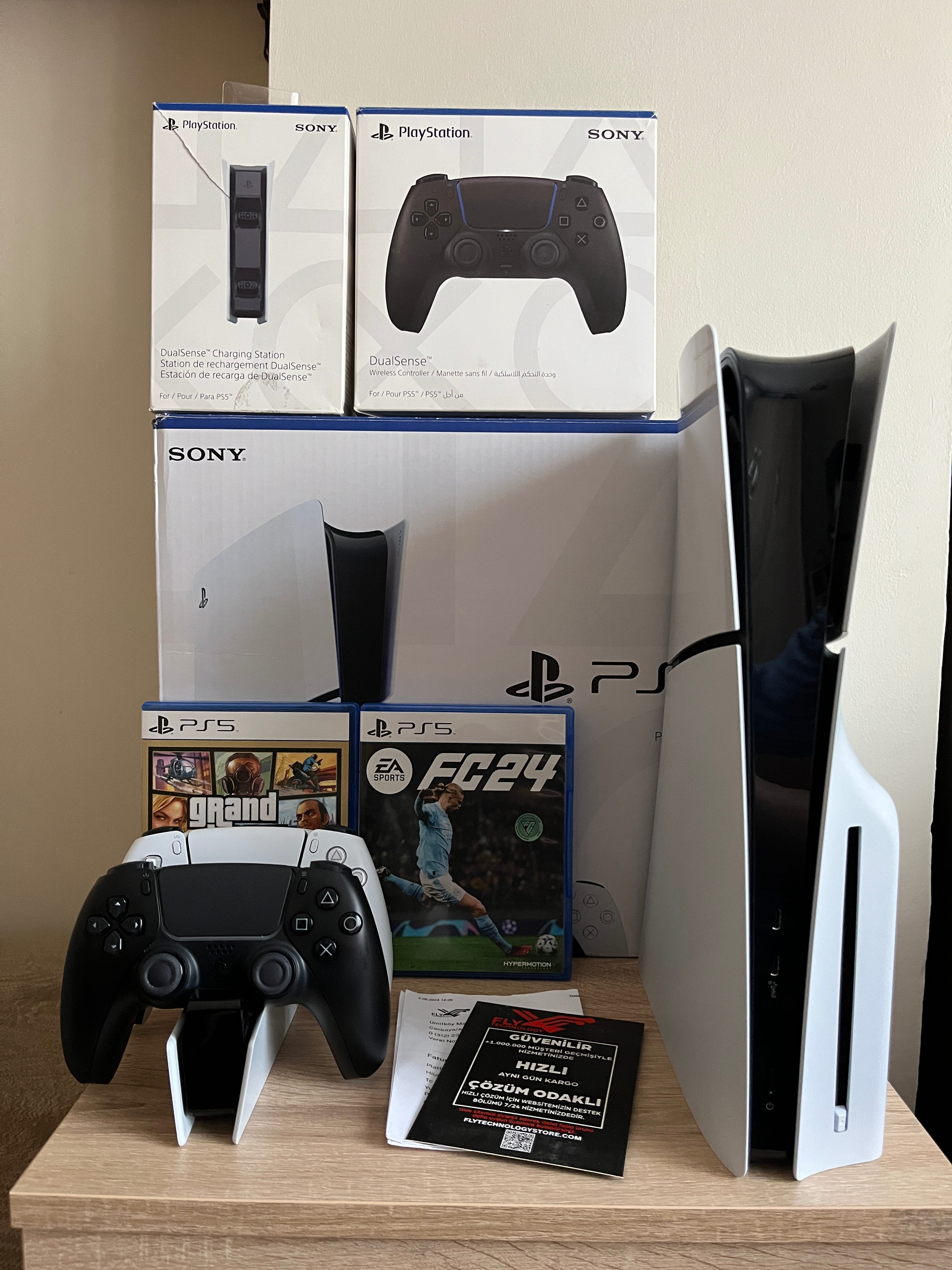 PLAYSTATION 5 SLIM CD + ÇİFT KOL + GARANTİ + 2 KUTULU OYUN + ŞARJ İSTASYONU