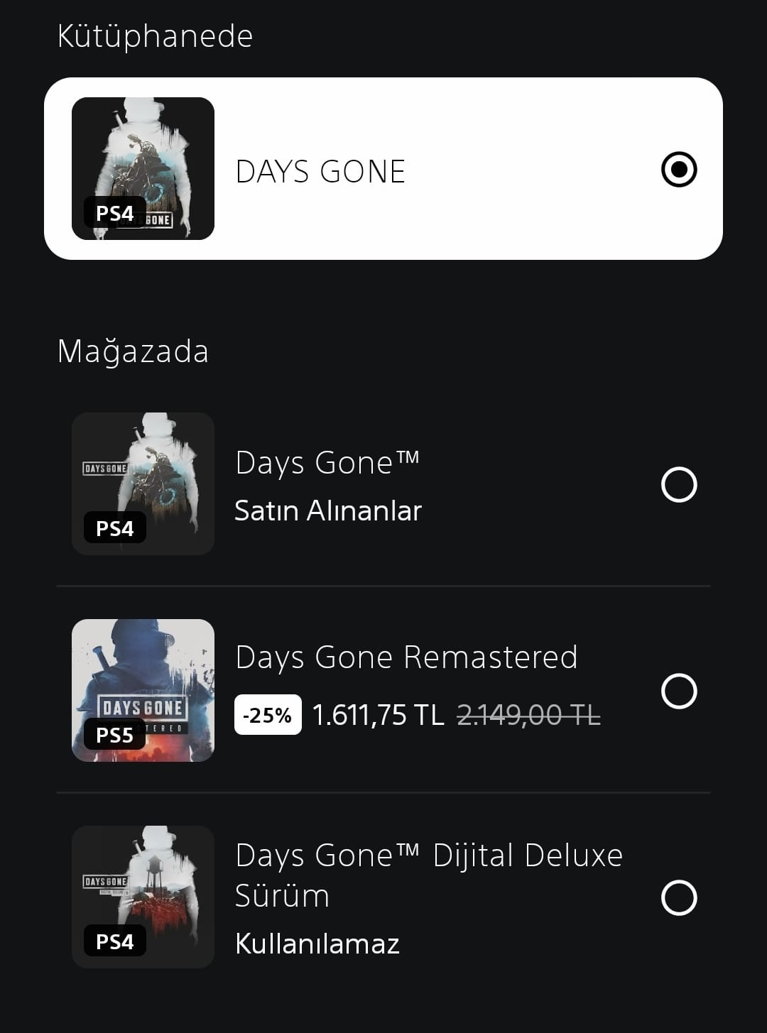 | 21 TL olan sadece ps4 sürümü. Ps5 dahil değil. |