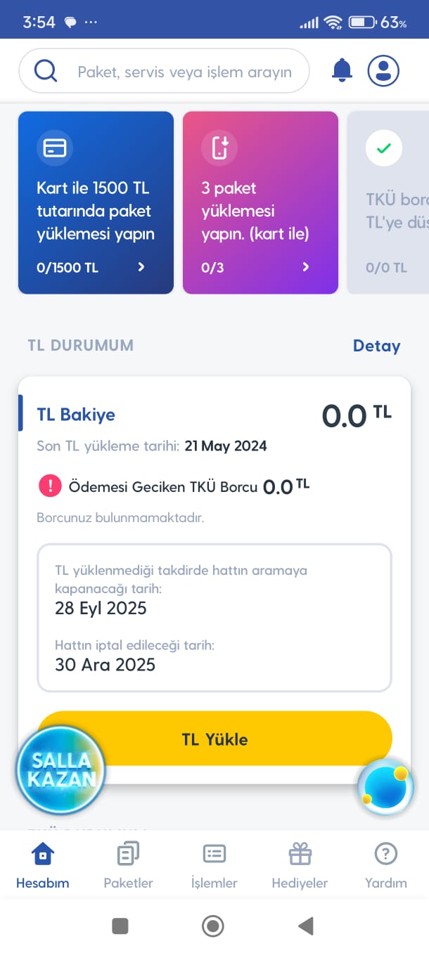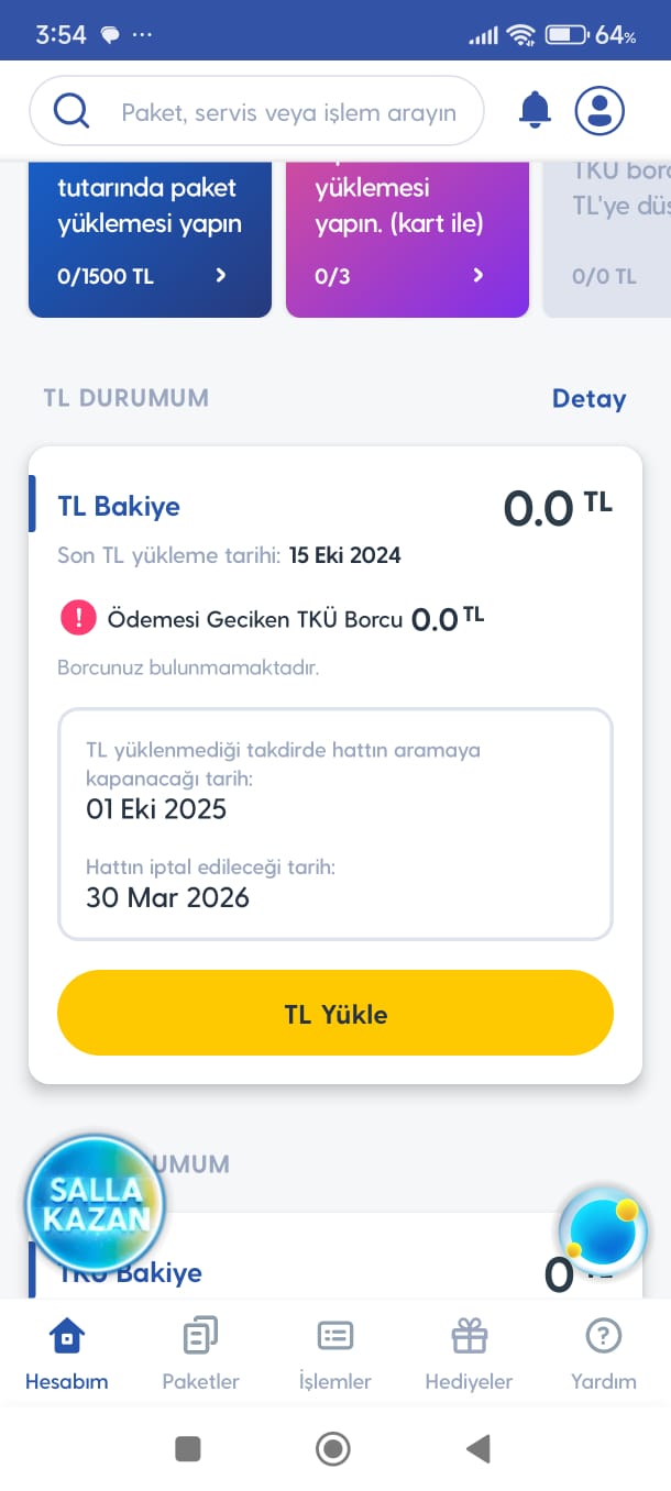 | 225 lira bakiye olan ve atıl duran hattıma, kapanmasın diye 30 lira yükledim. Kullanım süresi uzadı fakat bakiye artmadı. Şikayet oluşturdum, arayan soran yok. 5 gün geçti, hala bakiye artmadı. Başına böyle bir durum gelen var mı ? |