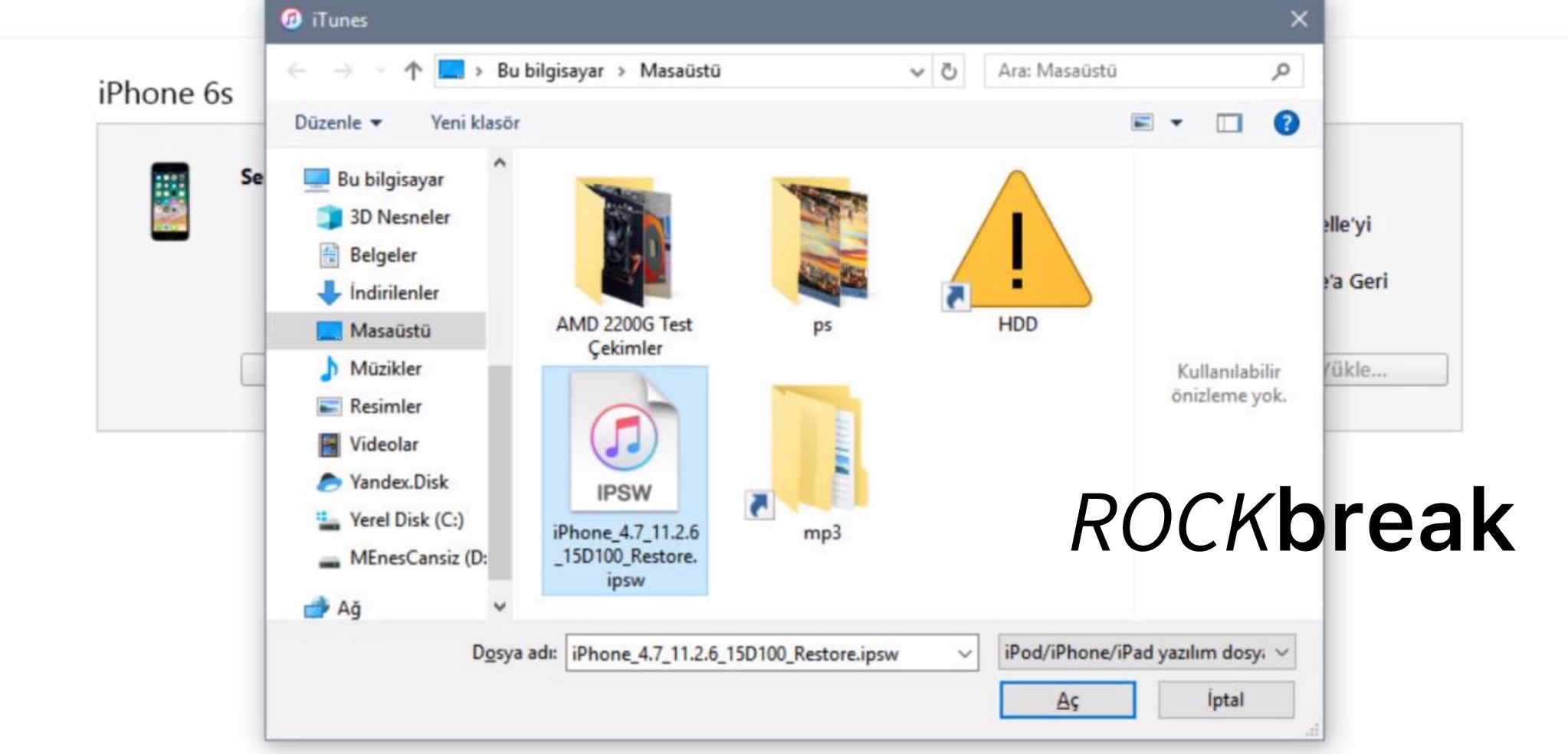 Shift tuşuna basılı tutarak tıkladığımız geri yükle butonu önümüze bir pencere açacak. Açılan pencerede ilk adımda indirdiğimiz iOS yazılım dosyamızı buluyor ve seçiyoruz. Tamam dedikten sonra iTunes, yazılımı ayıklayacak ve cihaza yüklemeye başlayacaktır. Bu işlem birkaç dakika sürebilir.