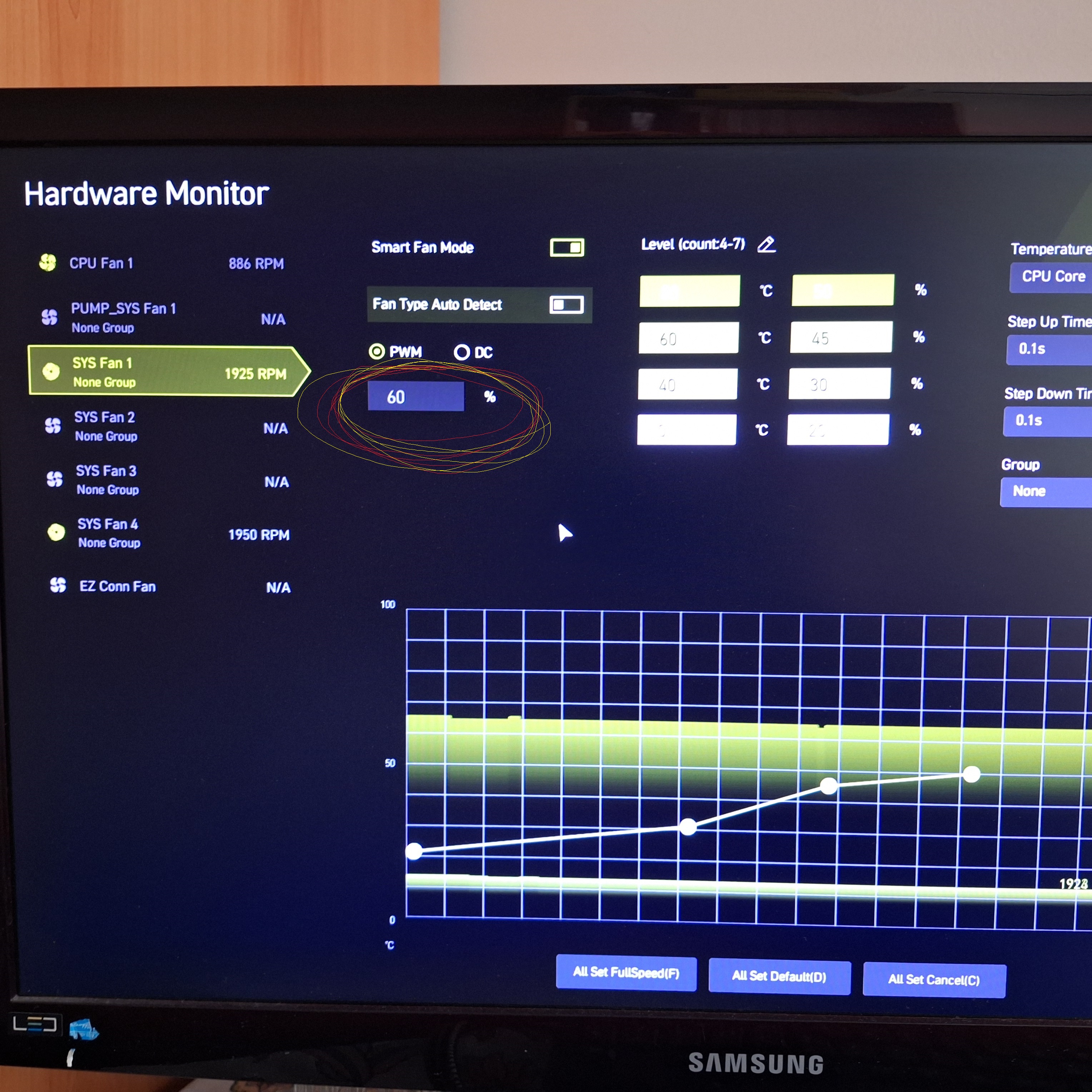 Sistem fan 1 ve 4 %60a sabitlenmiş durumda.
