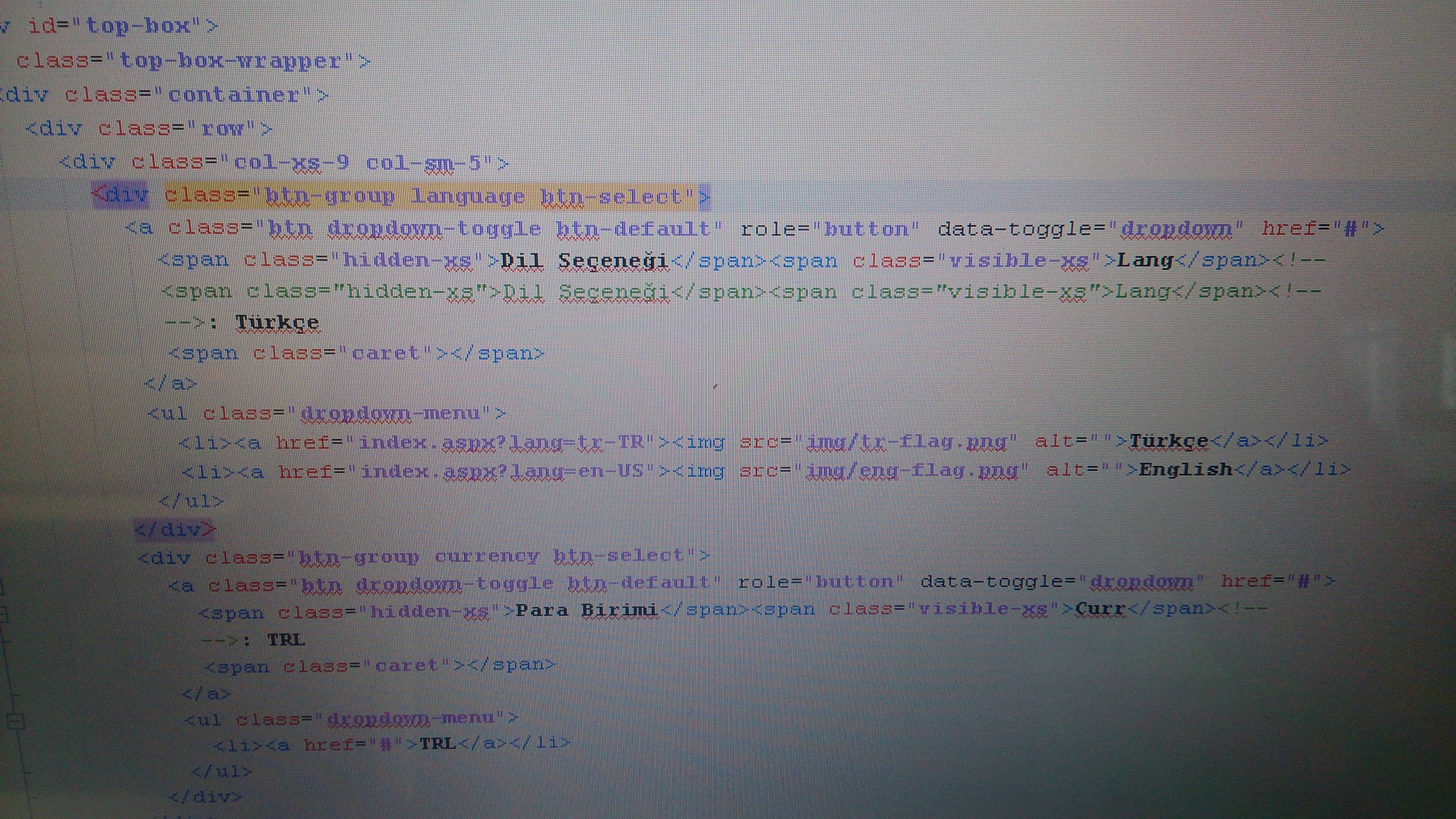 Arkadaşlar Merhaba, Konu MasterPage bir sitesi. Resimde görülen kod sitedeki dil seçeneği kısmı İngilizce'yi seçtiğimde Site ingilizce oluyor problem yok ama hala türkçe yazıyor dil seçeneğinde. Default olarak hep türkçe görünüyor. Nasıl çözerim < Resime gitmek için tıklayın > |